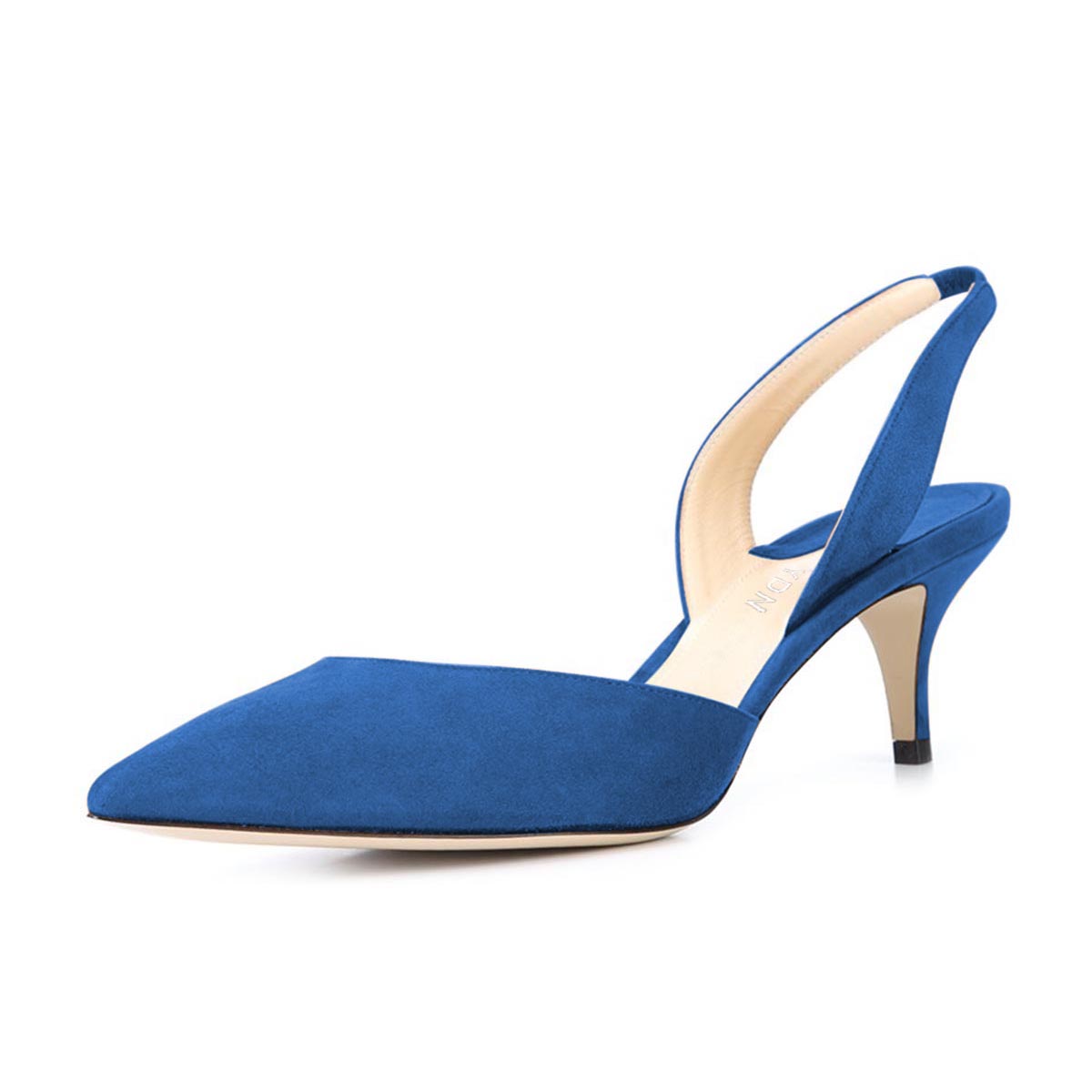 Faux Suede Pointed Slingback Elegant Heel Pumps in Royal Blue