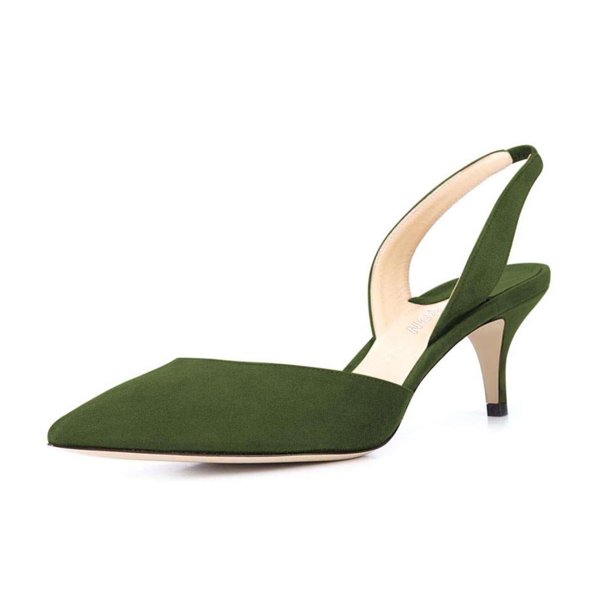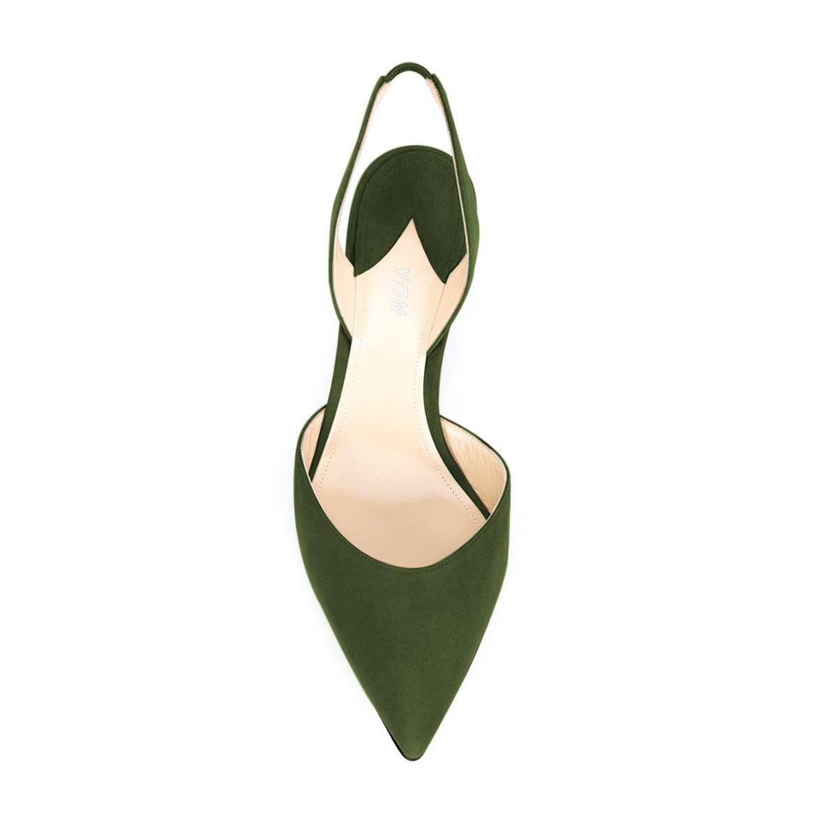 Faux Suede Pointed Slingback Military Green Pumps for Women