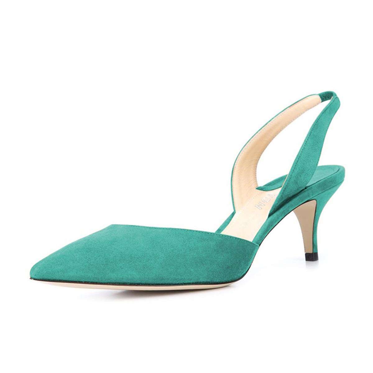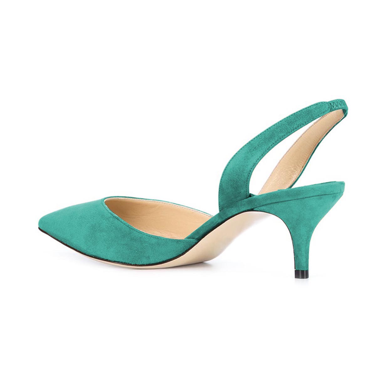 Faux Suede Turquoise Pointed Slingback Strappy Kitten Heel Pumps