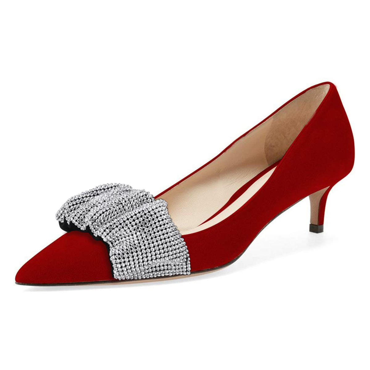 Faux Suede Pointed Toe Rhinestone Embellished Red Elegant Pumps