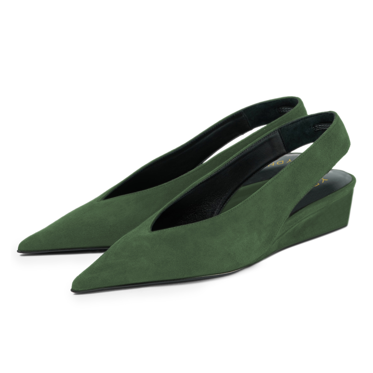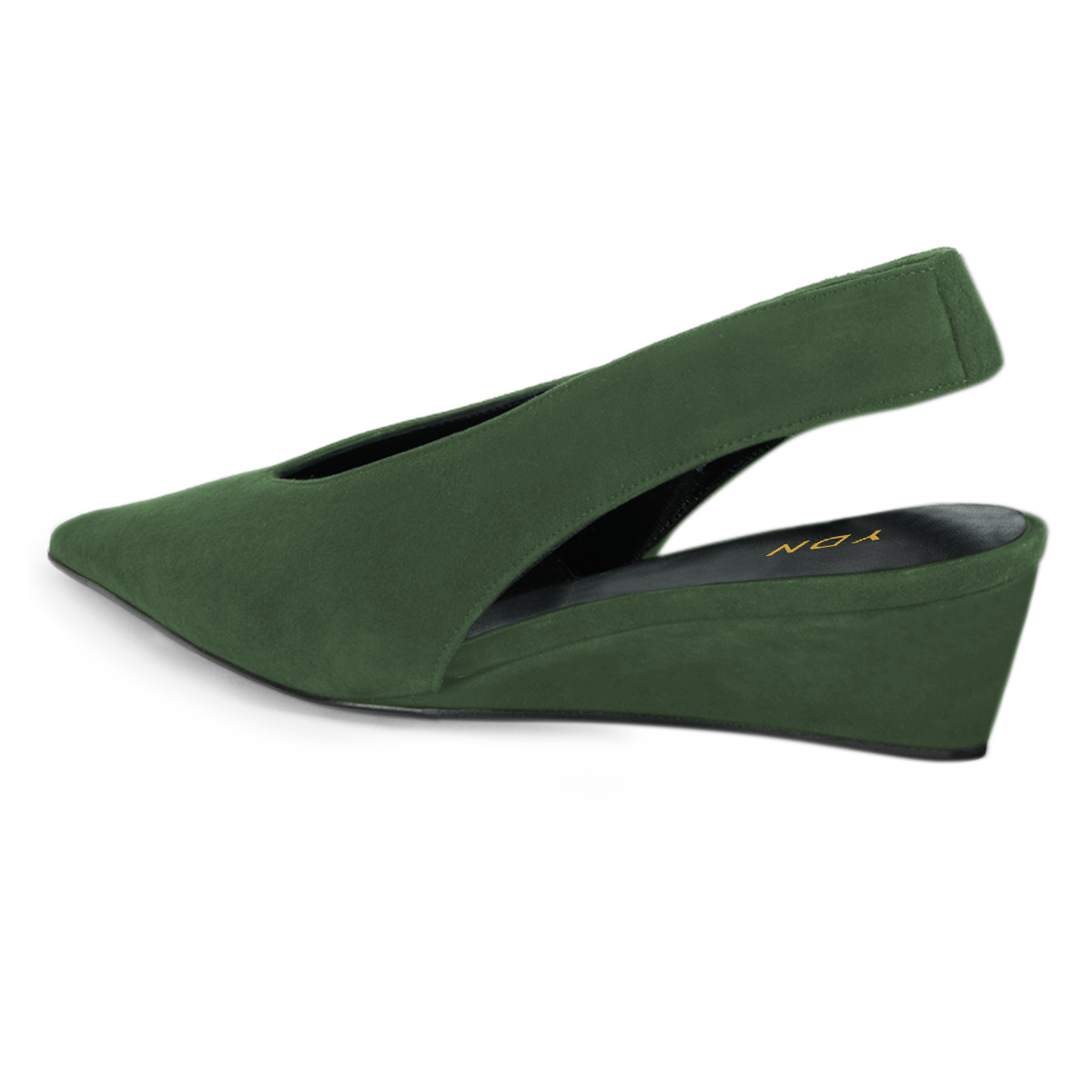 Faux Suede Slingback Strappy Classy Wedge Heel Pumps in Dark Green