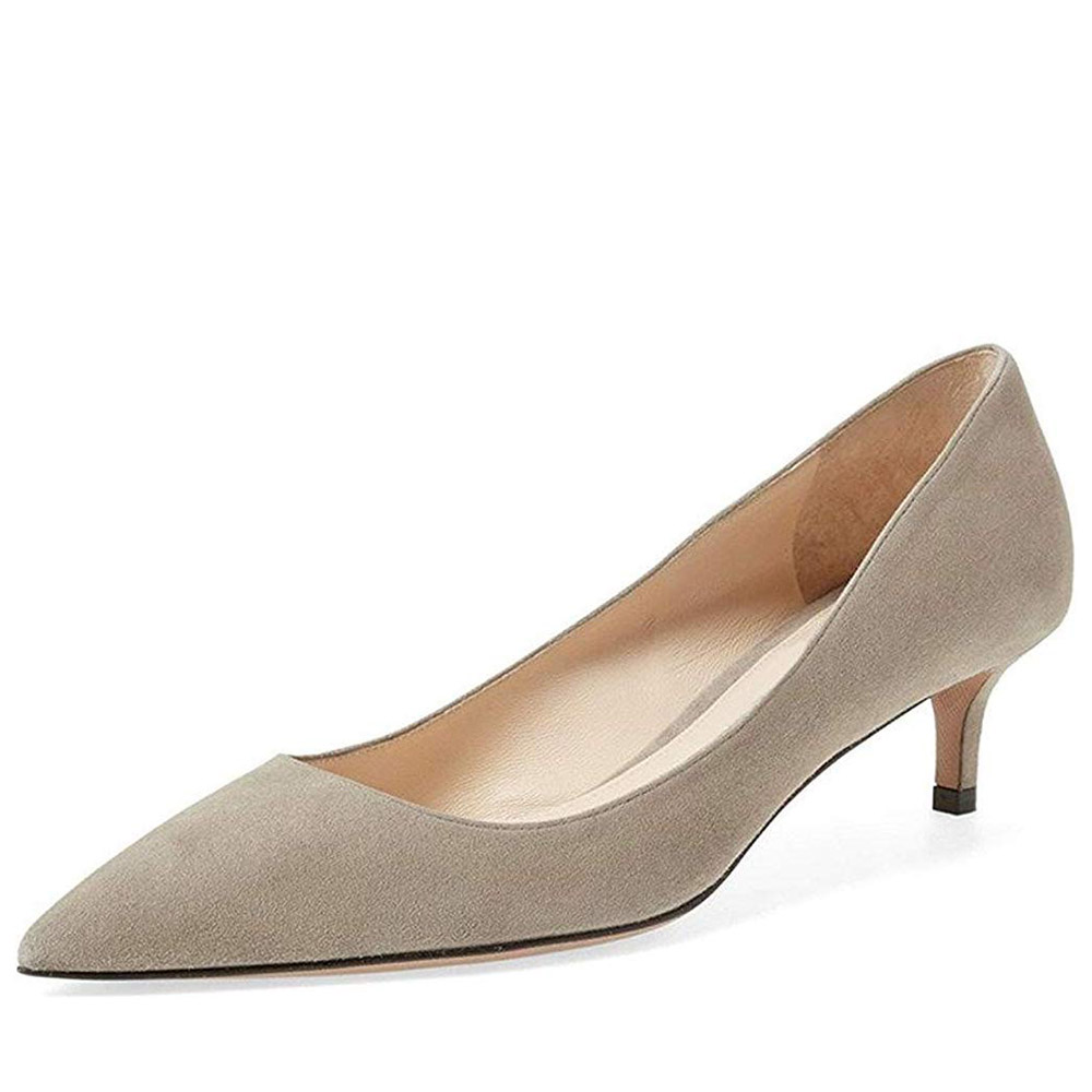 Faux Suede Sophisticated Pointed Elegant Kitten Heel Pumps in Gray