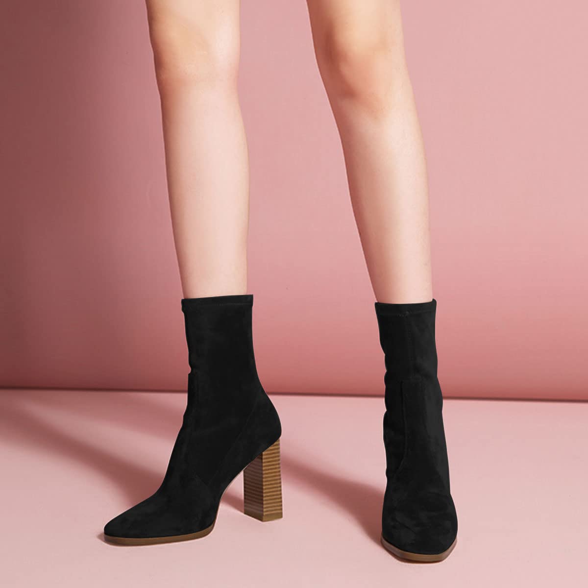 Special Designs: The black ankle boots with faux suede sophistication and a classic block heel