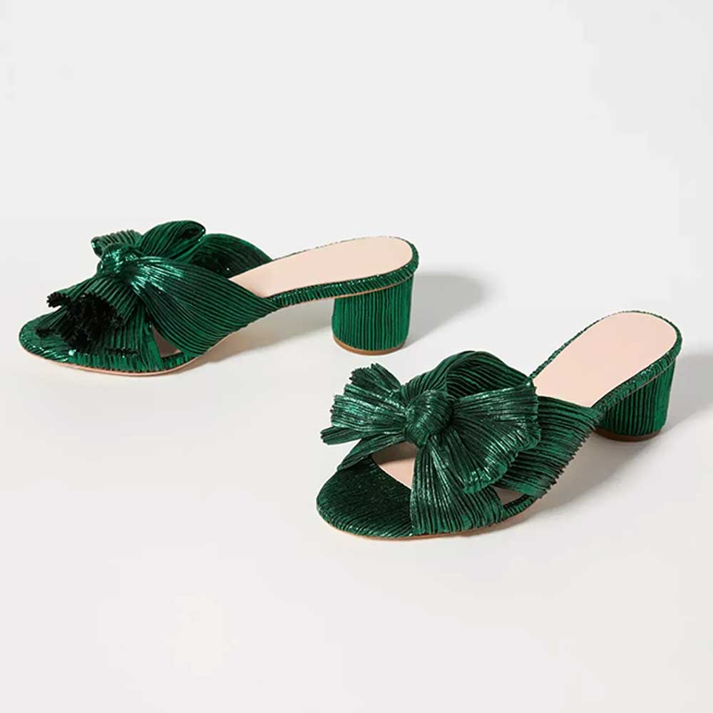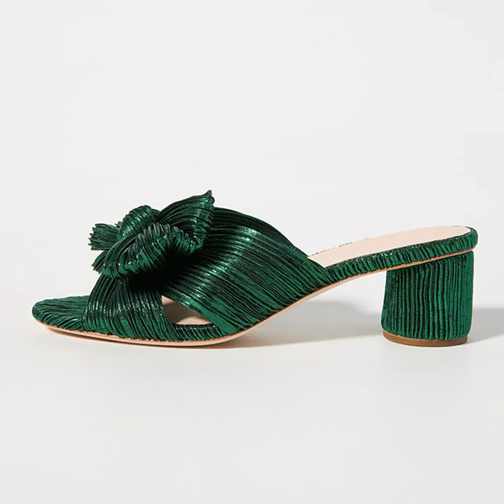 Fresh Green Open Toe Wrinkled Women's Block Heeled Sandals with Bow