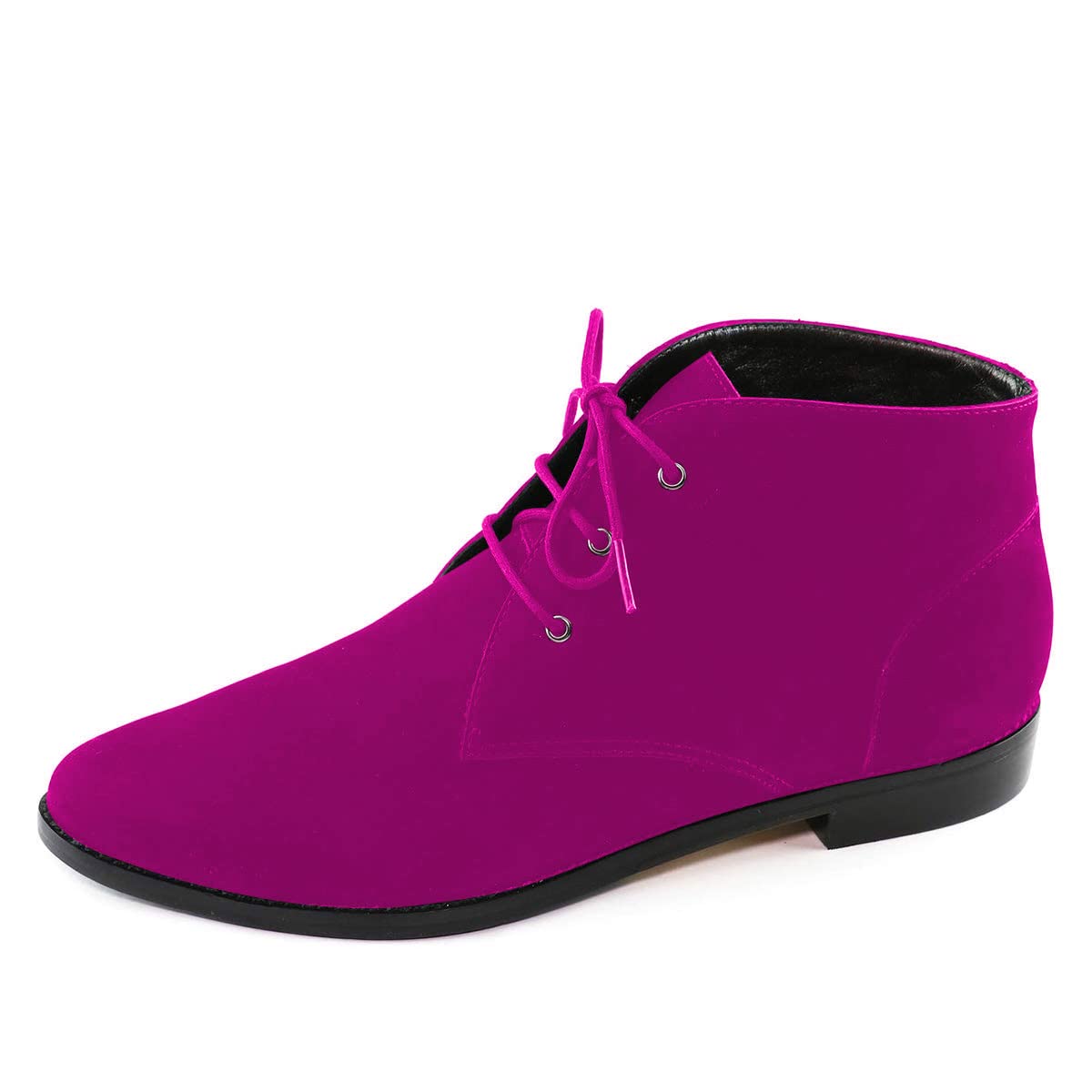 • Special Designs: Fuchsia faux suede sophisticated oxfords featuring a lace-up design.