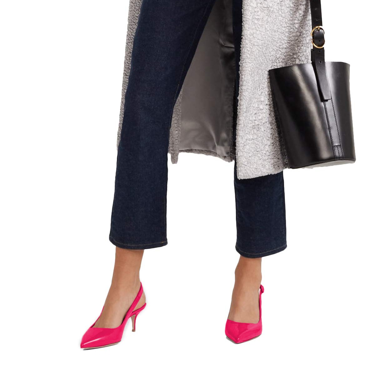 Fuchsia Pointed Toe Slingback Buckle Fastening Low Heel Pumps