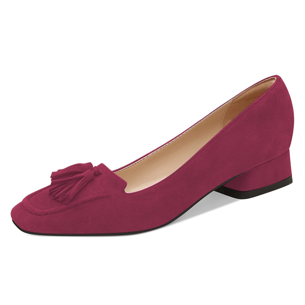 Fuchsia Square Toe Tassel Accent Block Heel Loafer Pumps Shoes