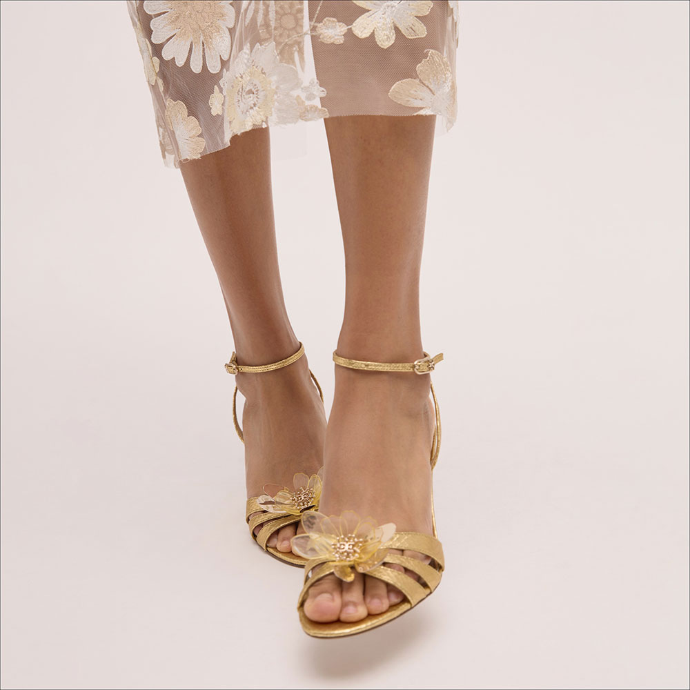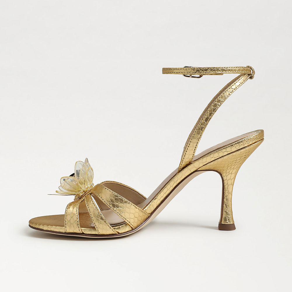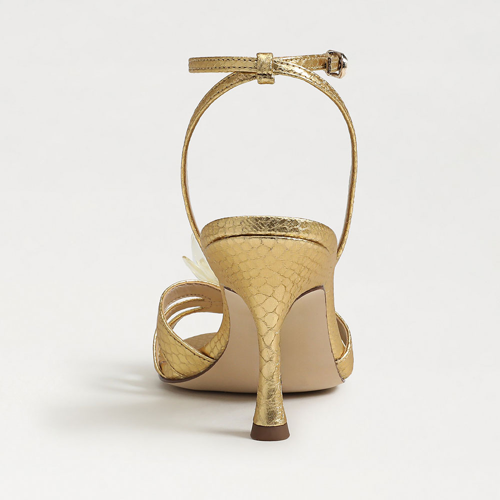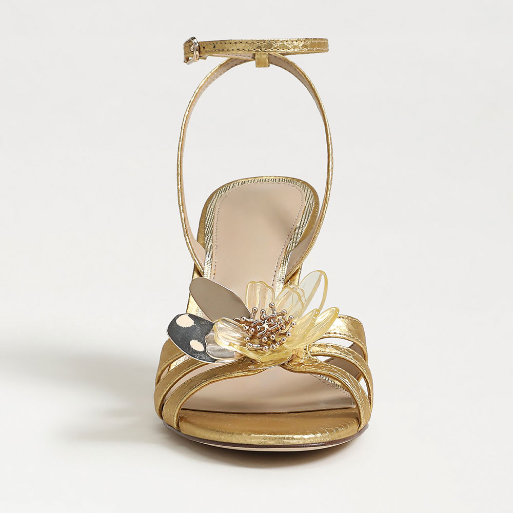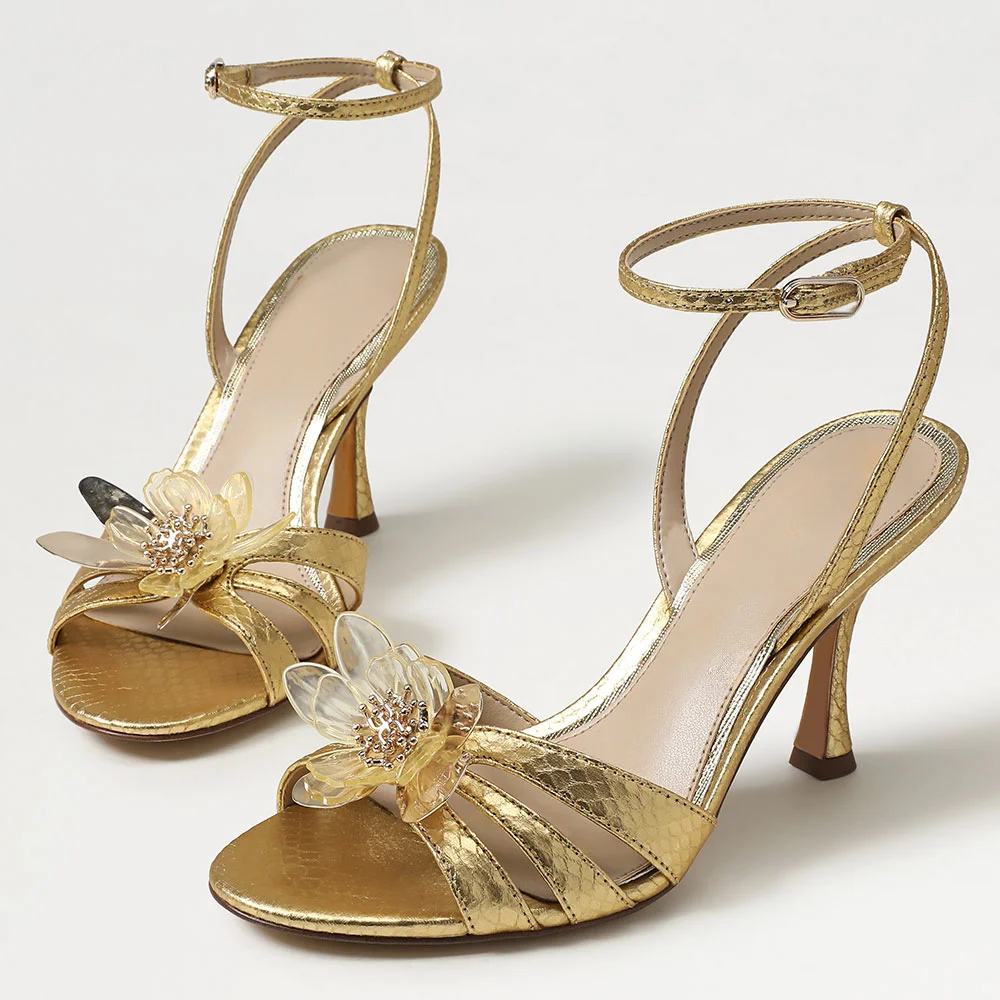 • Special Designs: The gold sandals feature a floral decorative and flared heel design withan ankle strap.