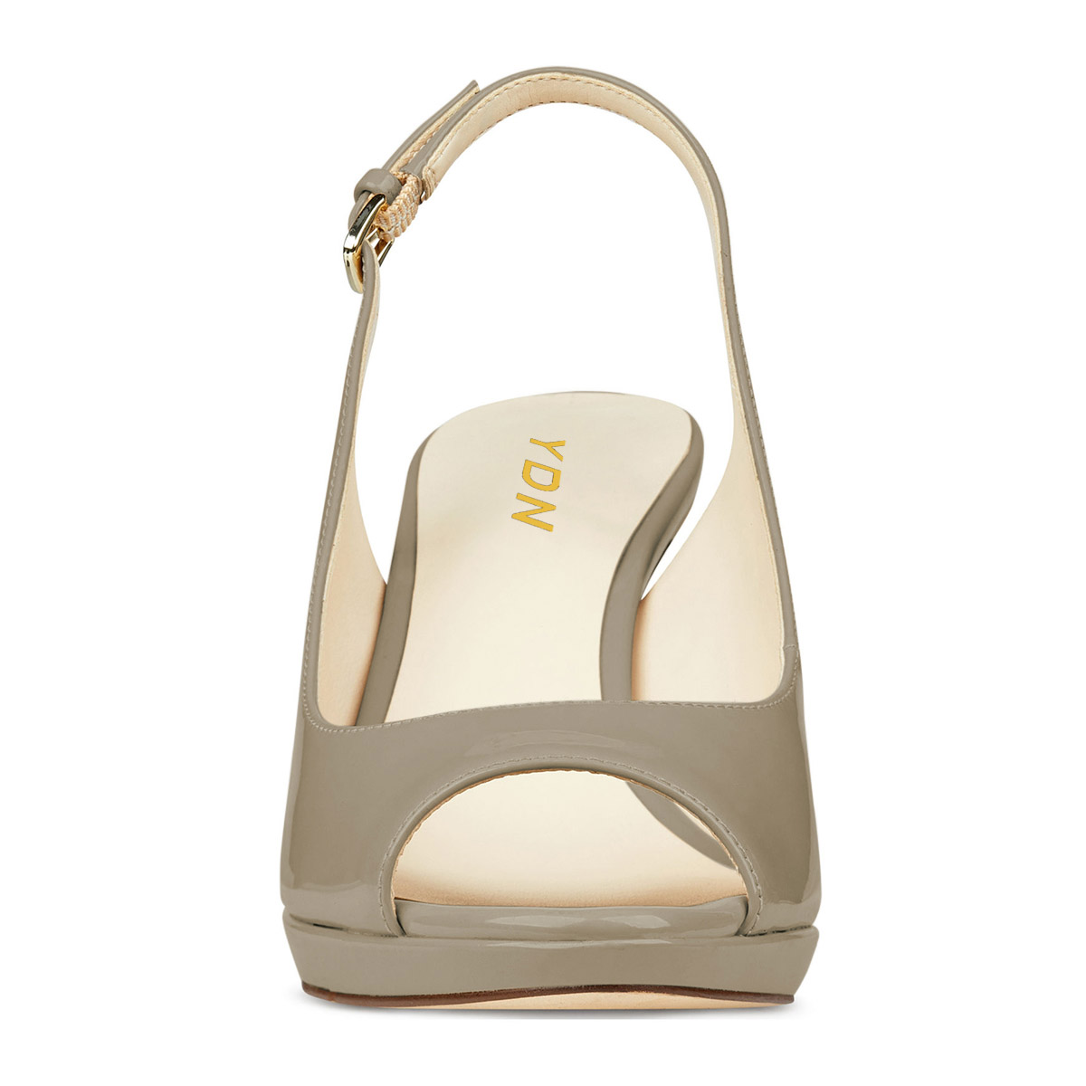 Gray Peep Toe Patent Leather Platform Slingback Sandals for Women