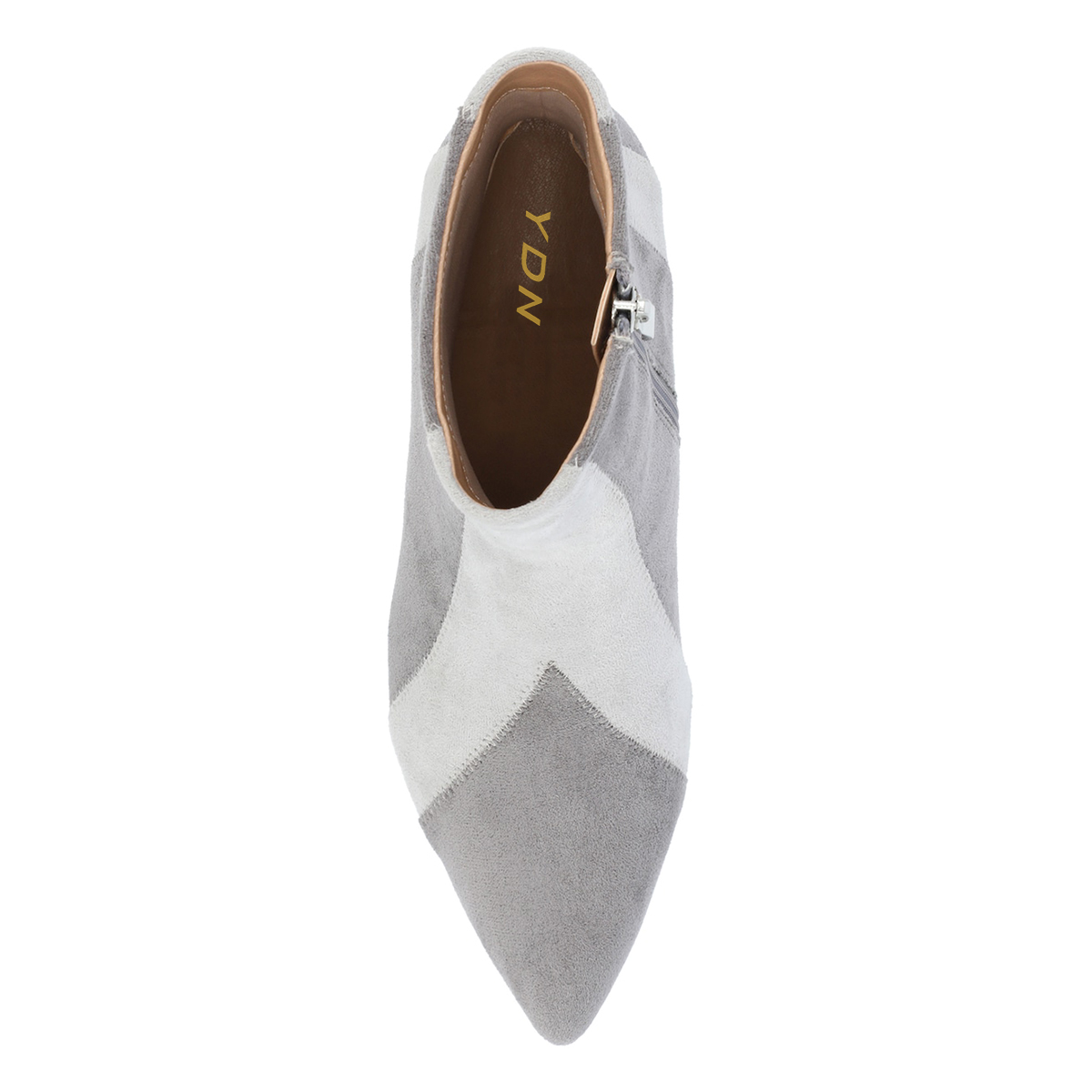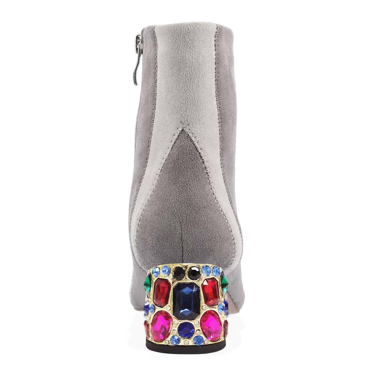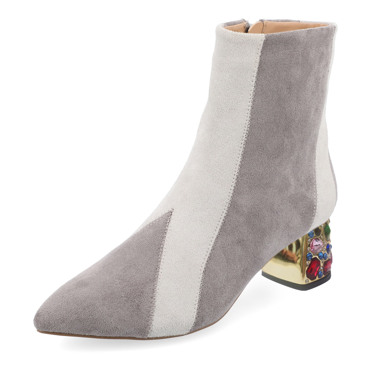 Gray & White Faux Suede Pointed Toe Rhinestone Embellished Ankle Boots