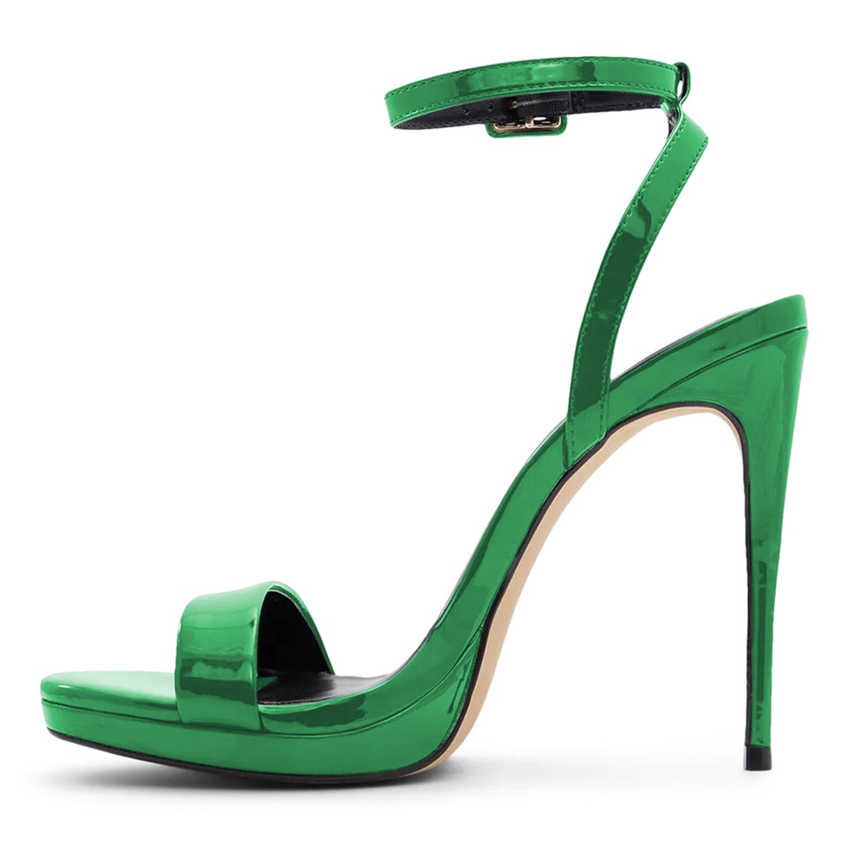 • Special Designs: The green sandals feature a round toe, a high stiletto heel, a platform, and an adjustable ankle strap.
