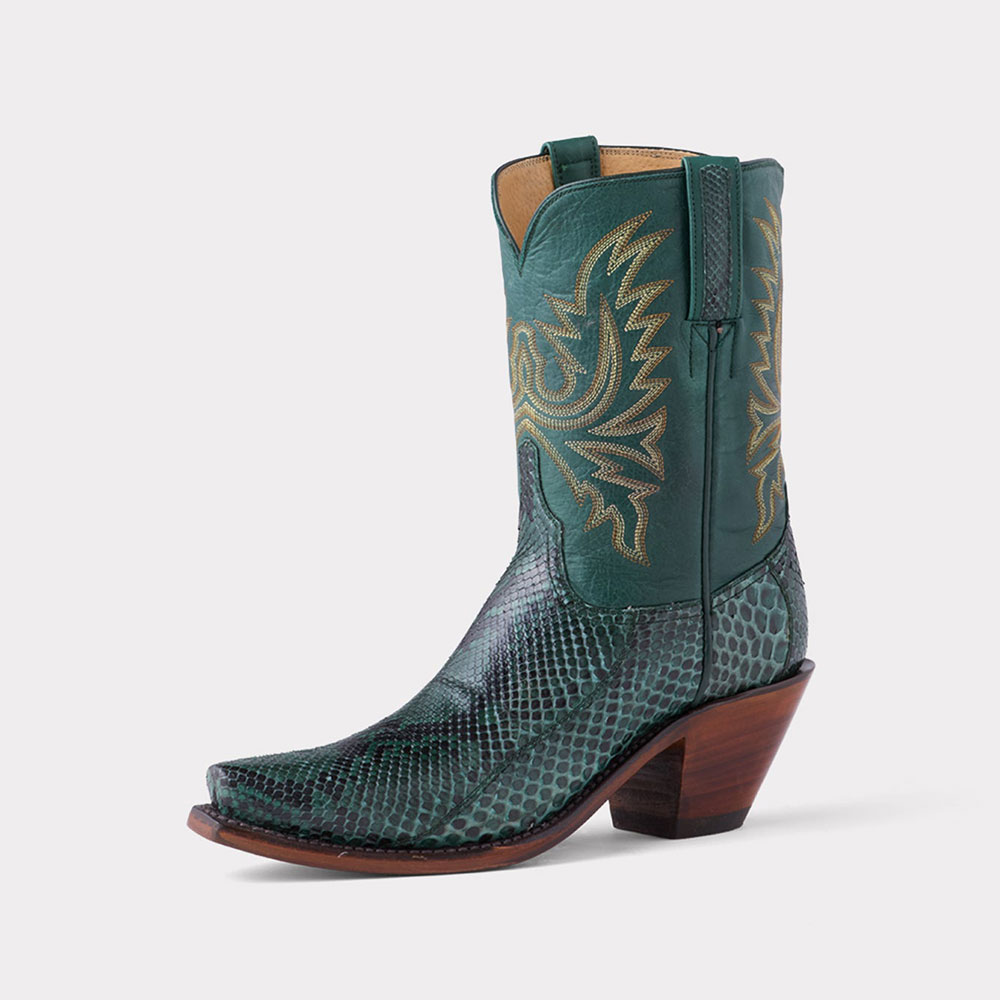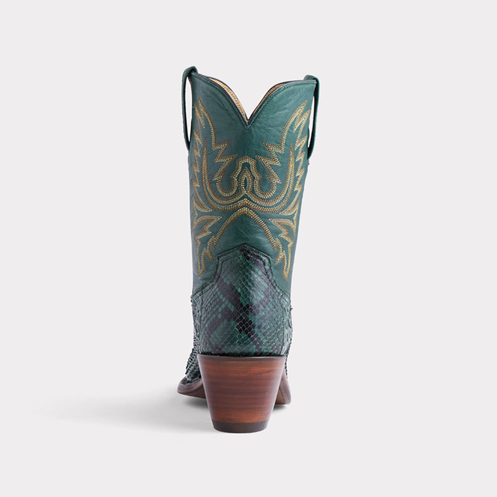 Green Python Embossed Snip Toe Cowgirl Boots with Embroidery