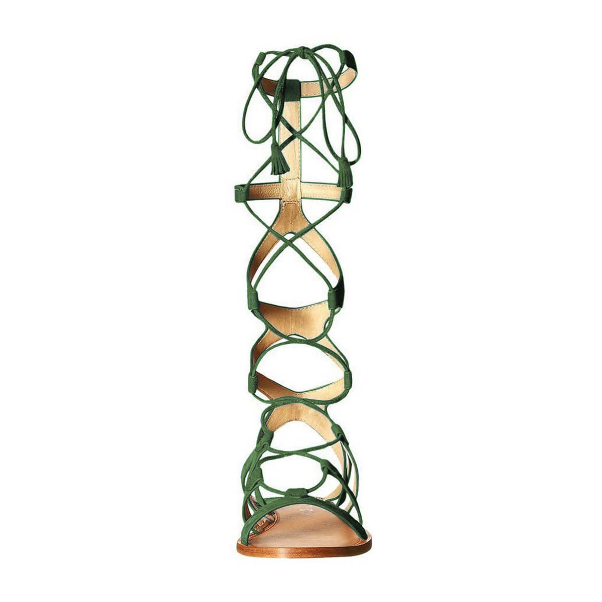 Green Vegan Suede Open Toe Lace Up Knee High Flat Sandals for Women
