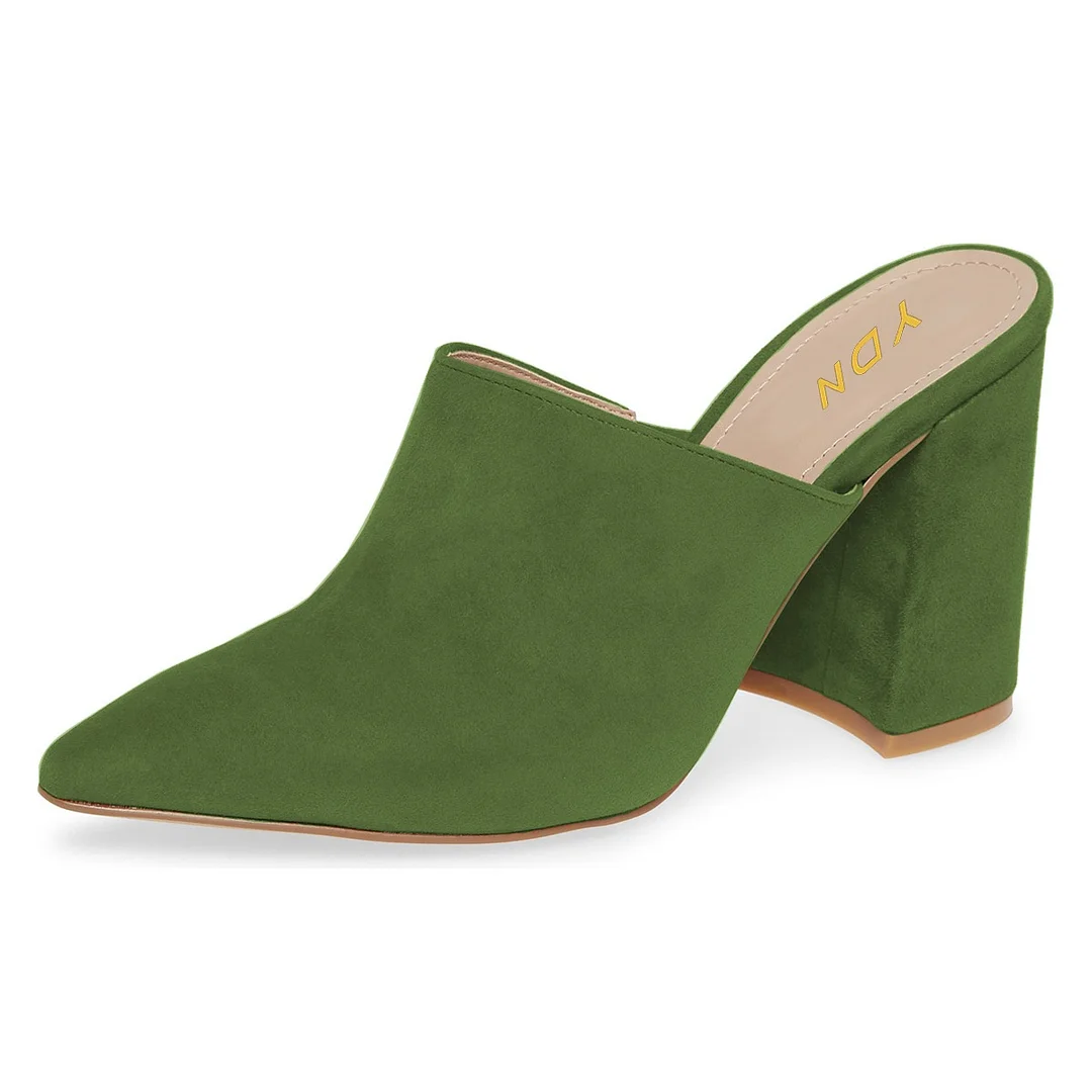 Green Vegan Suede Pointed Toe Heeled Slip On Women's Mules Shoes