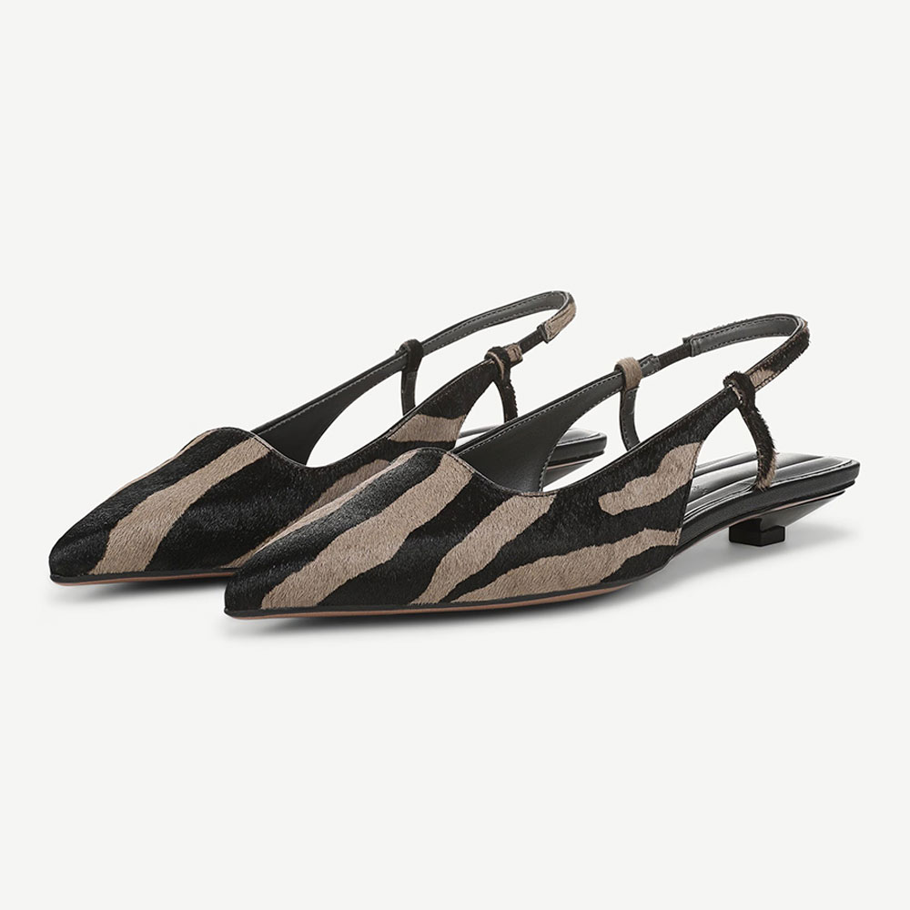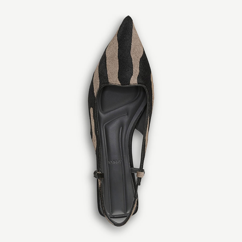 • Special Designs: The slingback flats feature a pointed toe and a stretch strap for easy wear, with a zebra print design.