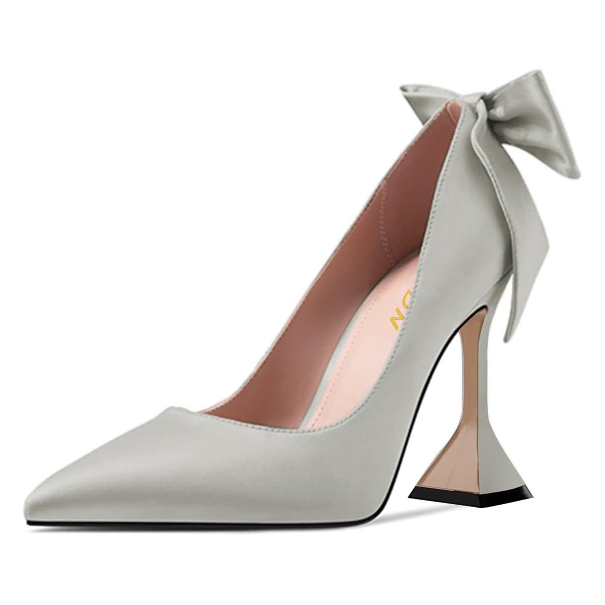 Grey Pointed Toe Back Bow Decor Pumps Shoes with Flared Heels