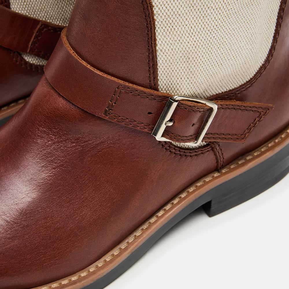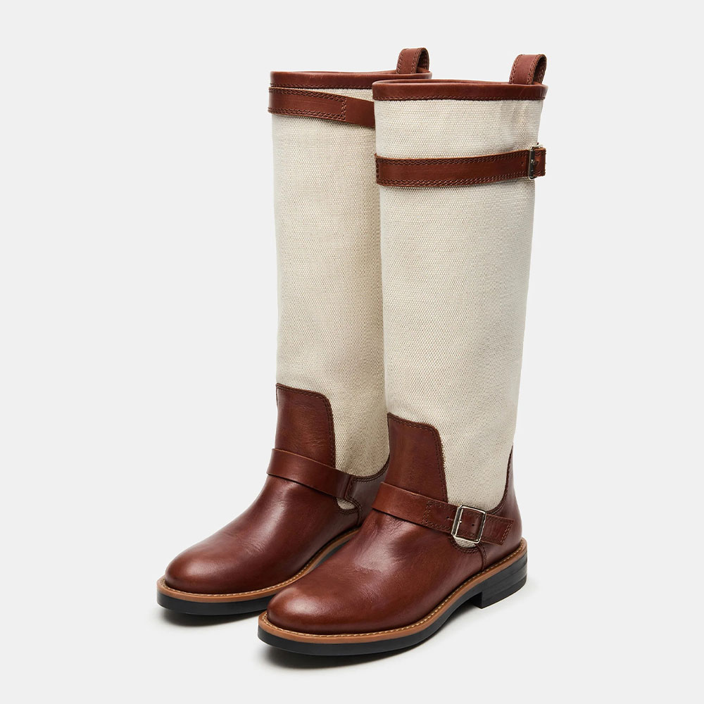 Ivory & Brown Round Toe Buckle Patchwork Wide Calf Knee High Boots