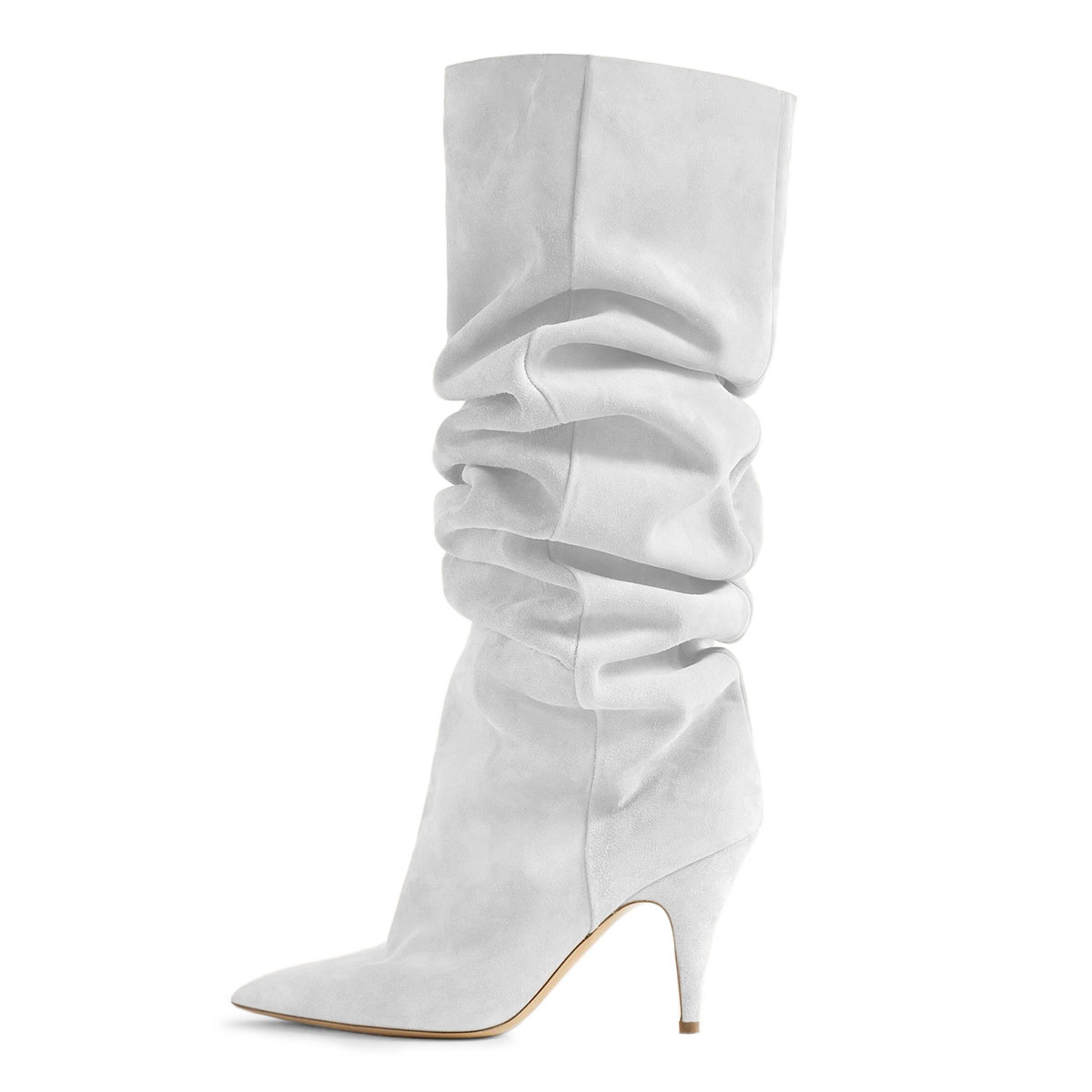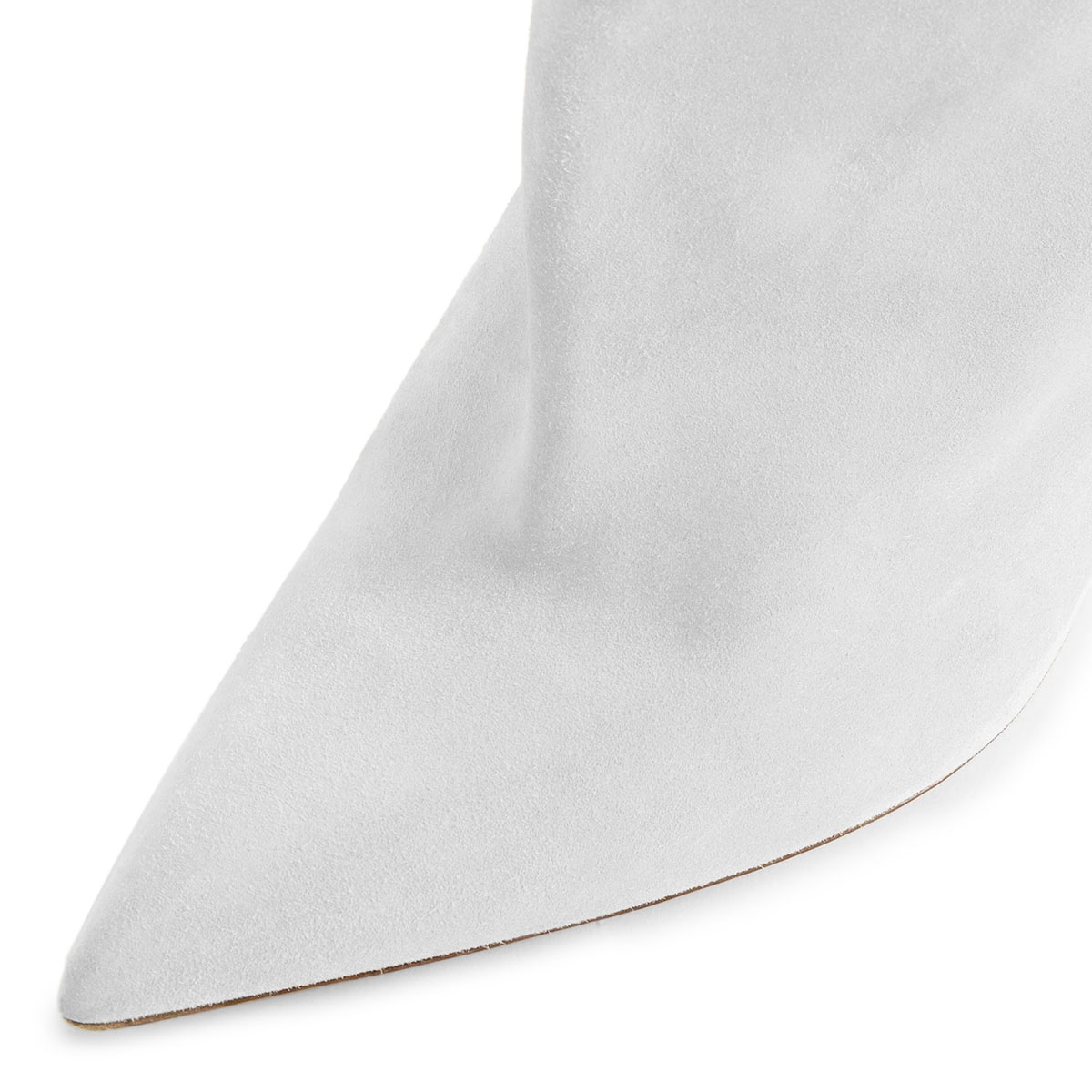 Ivory Faux Suede Pointed Toe Silhouette Boots with Stiletto Heel