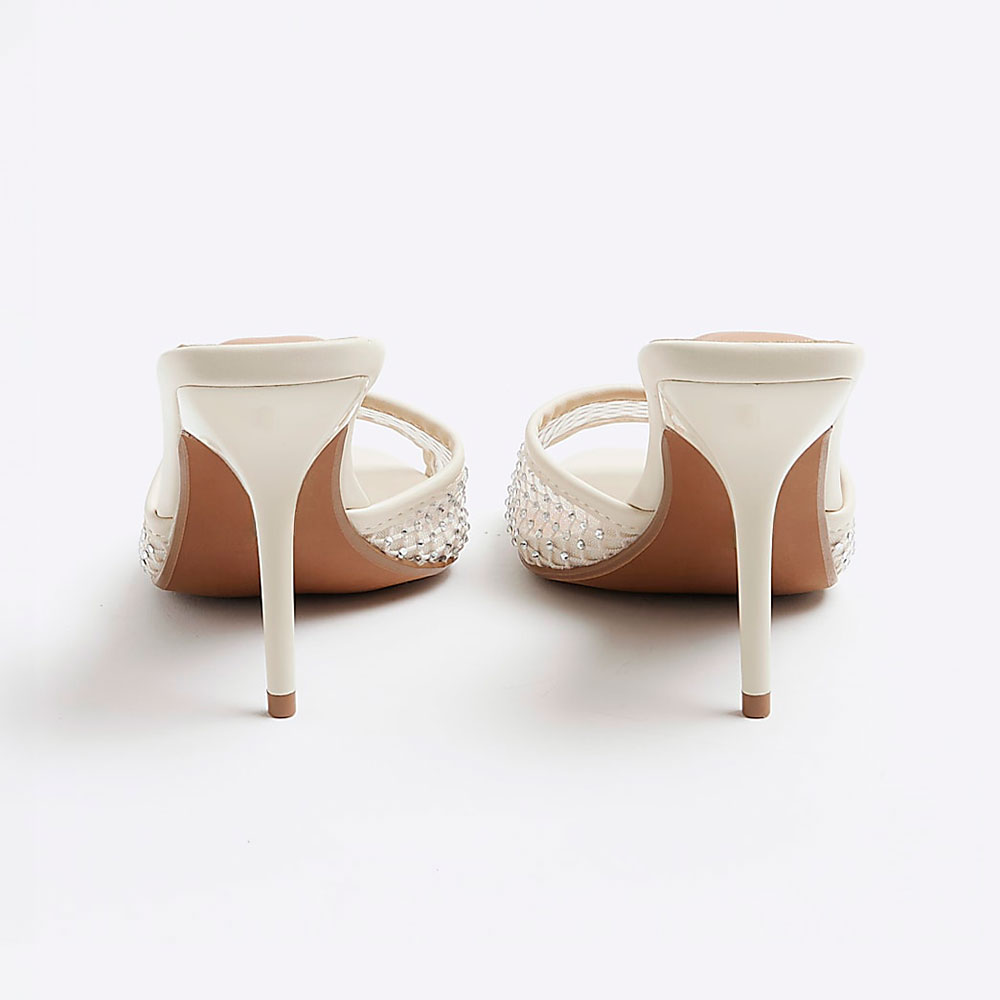 Ivory Rhinestone Mesh Open Toe Stiletto Heel Mules Sandals