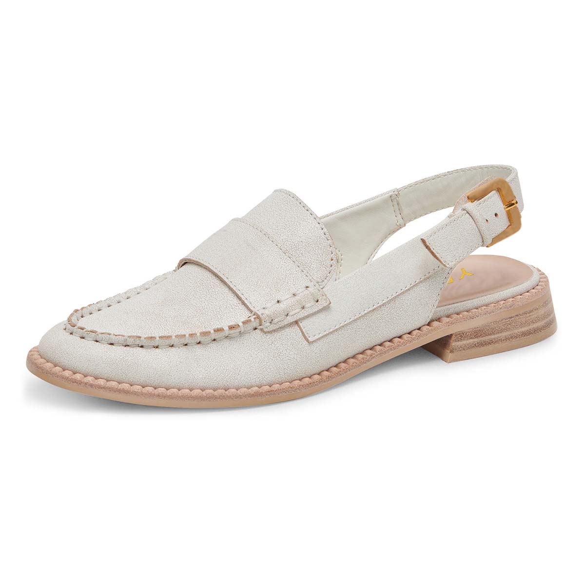 Special Designs: Ivory loafers featuring an adjustable buckle fastening slingback pattern and slip-on convinience.