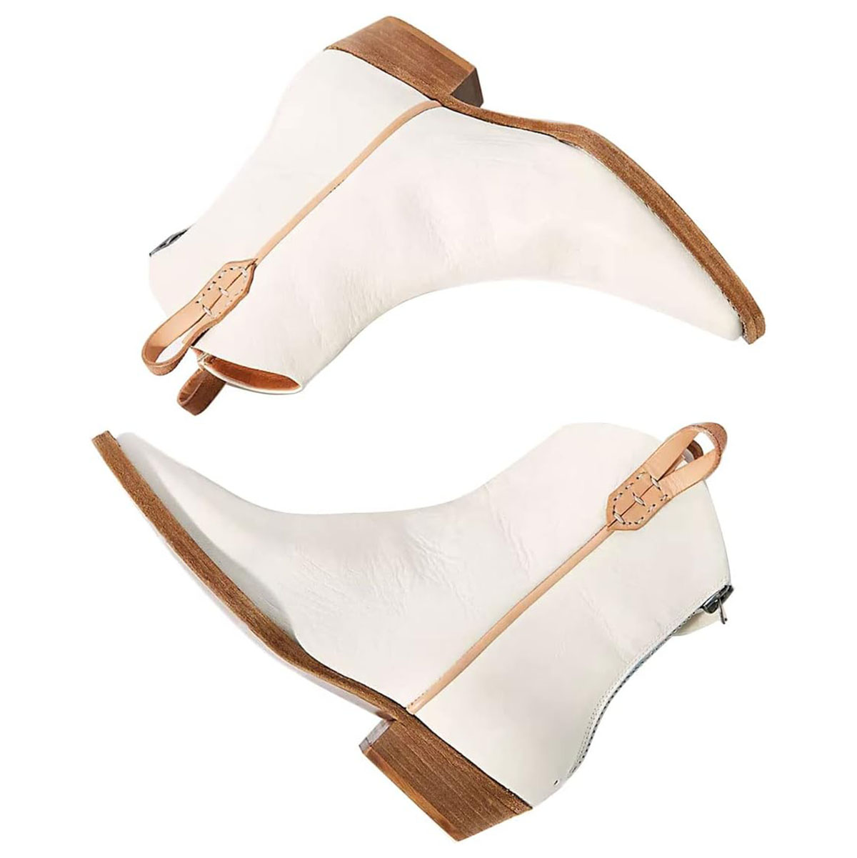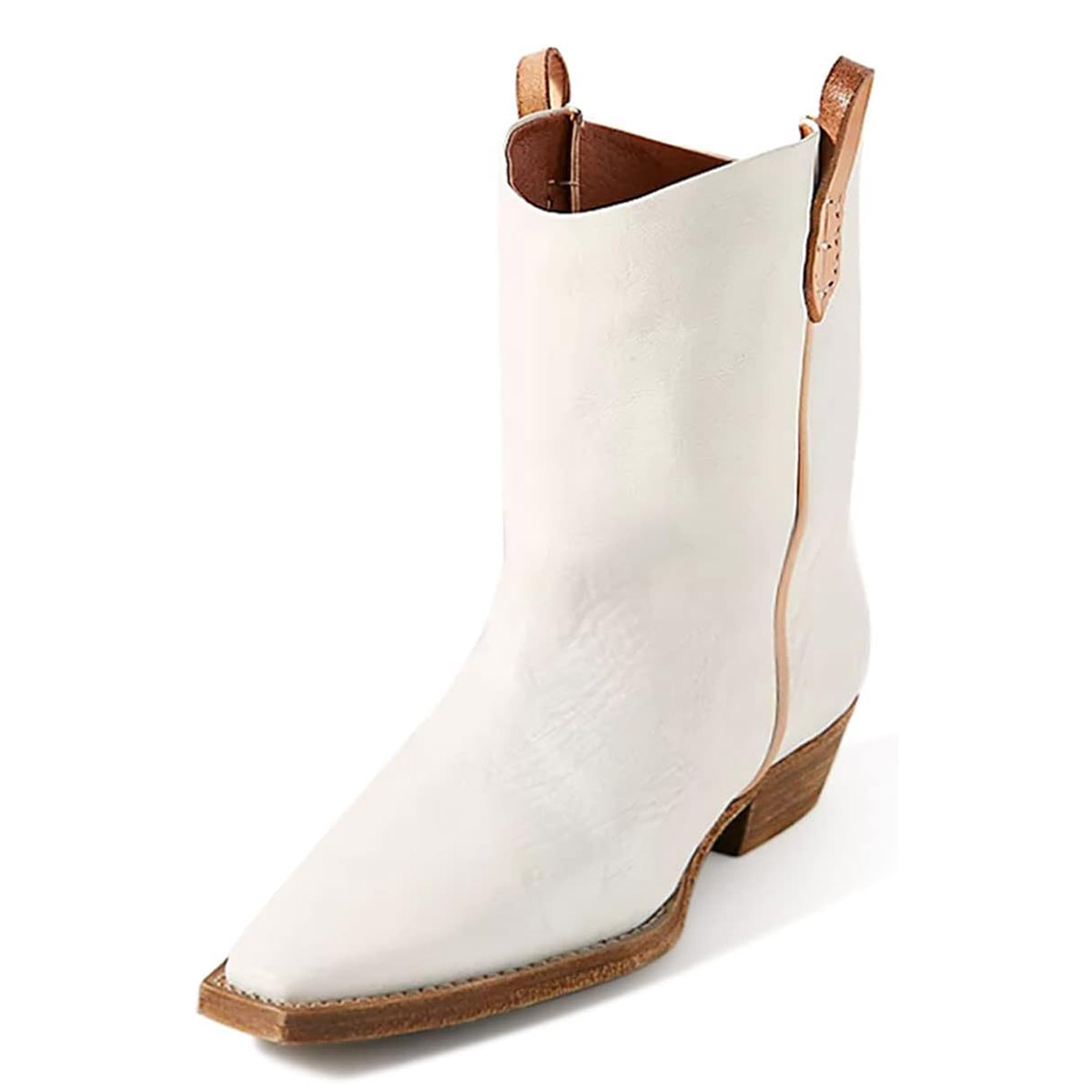 Ivory Snip Toe Brown Pull Tab Vintage Low Heel Cowgirl Ankle Boots