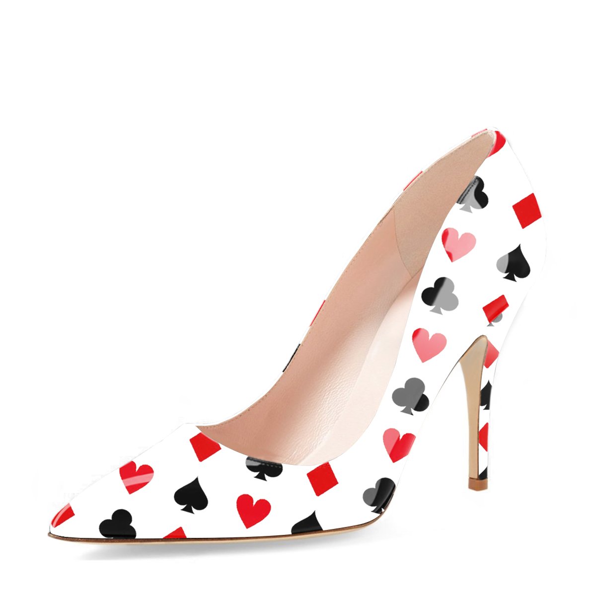 • Special Designs: Ivory pumps with colorful symbol printed patent leather sophistication and a classic stiletto heel