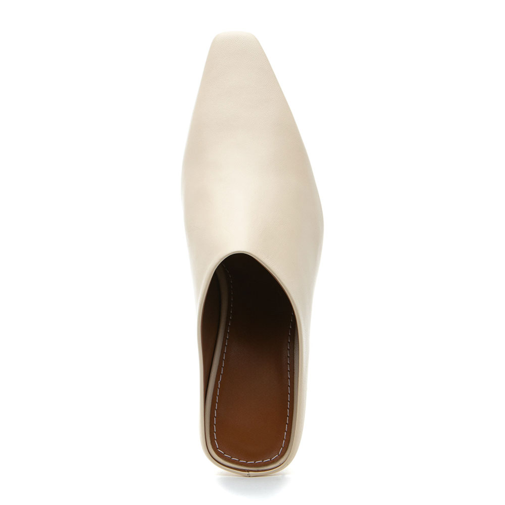 • Special Designs: The ivory vegan leather square-toe mules feature a sleek, minimalist, and slip-on design and a comfortable chunky heel.