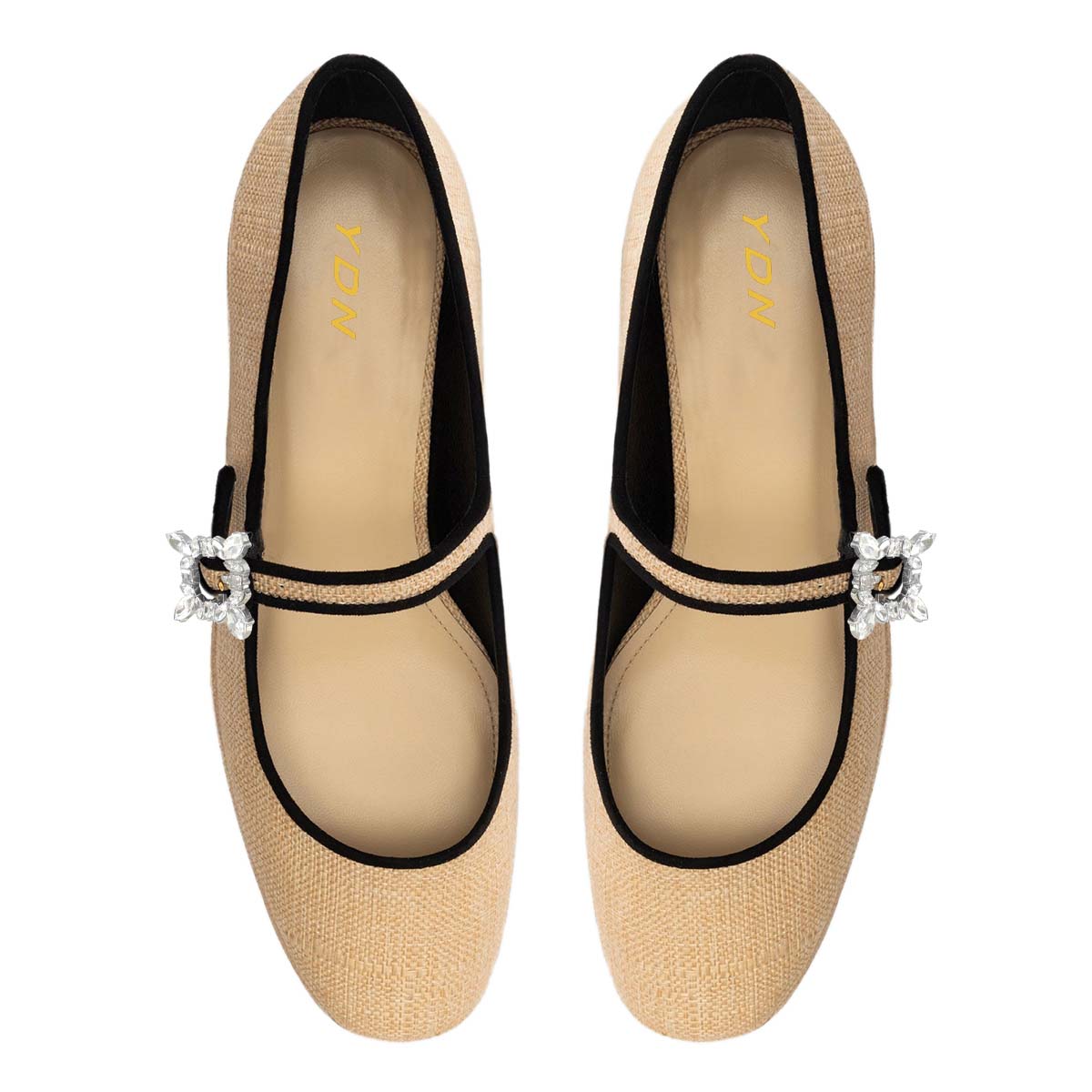 Khaki Round Toe Crystal Buckle Strap Mary Jane Platform Shoes