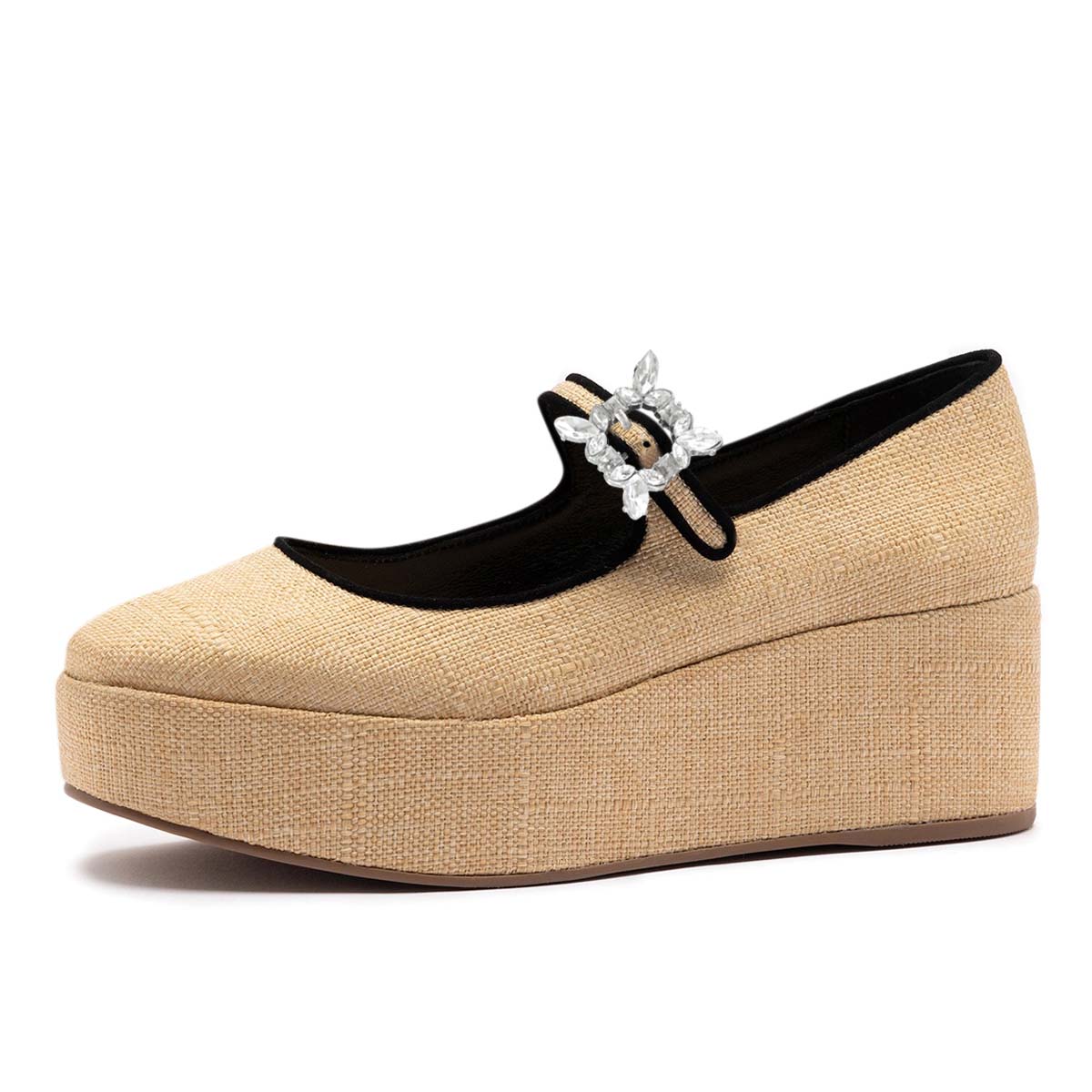 Special Designs: The Mary Jane platform shoes feature a crystal buckle strap and platform wedge heel for comfortable wearing.