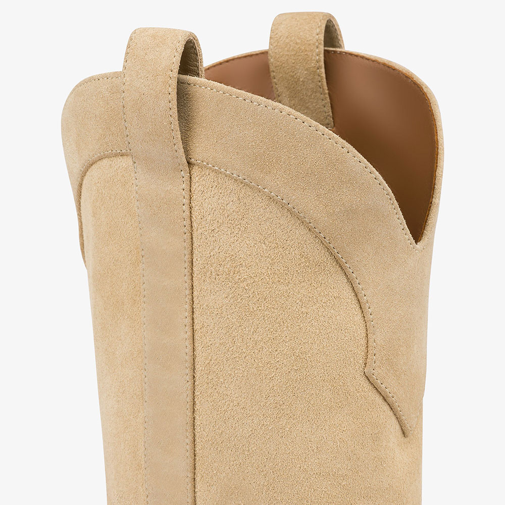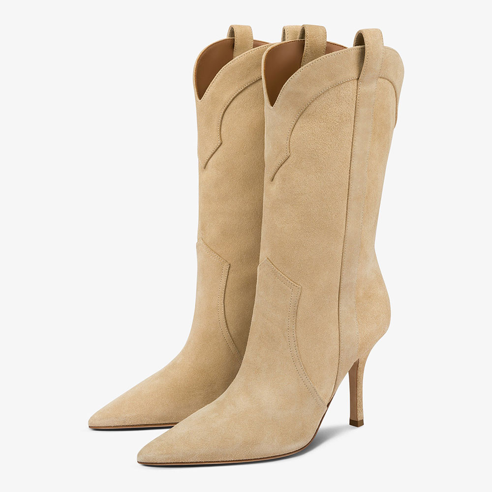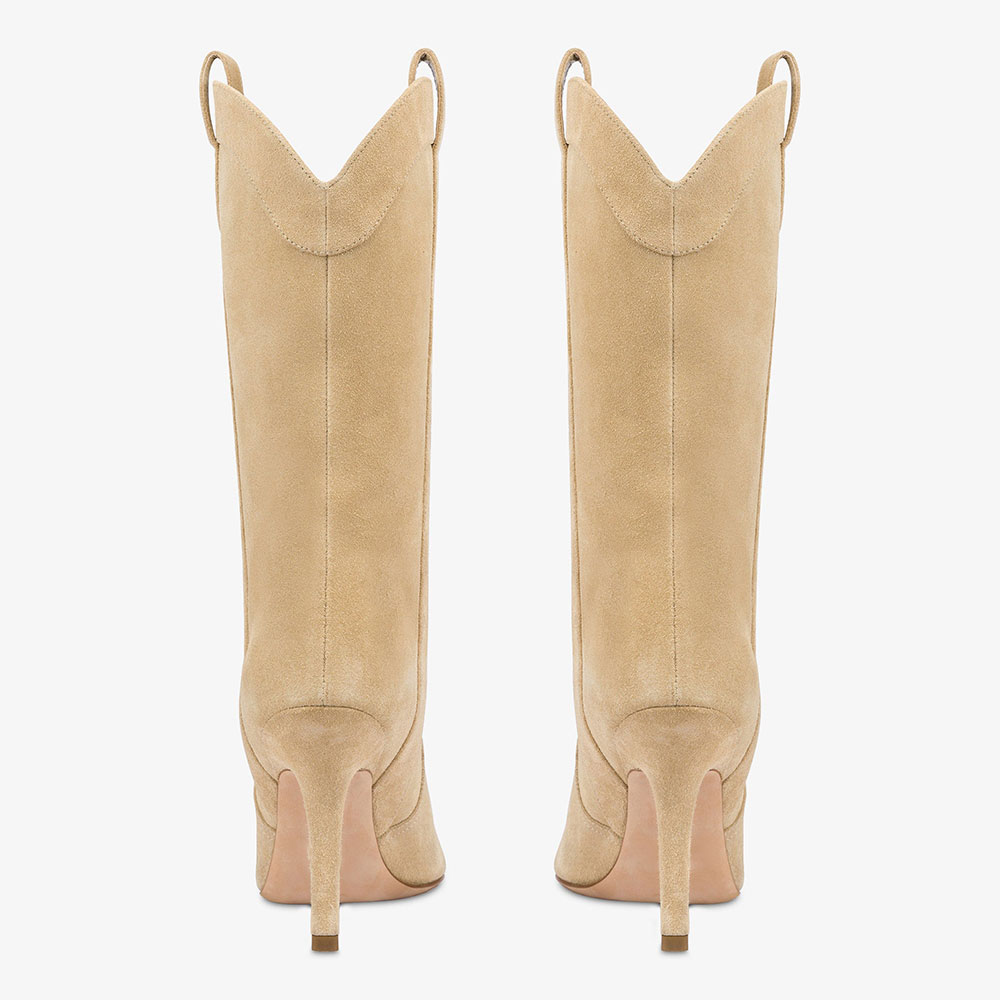 Khaki Vegan Suede Pointed Toe Stiletto Heel Western Boots for Women