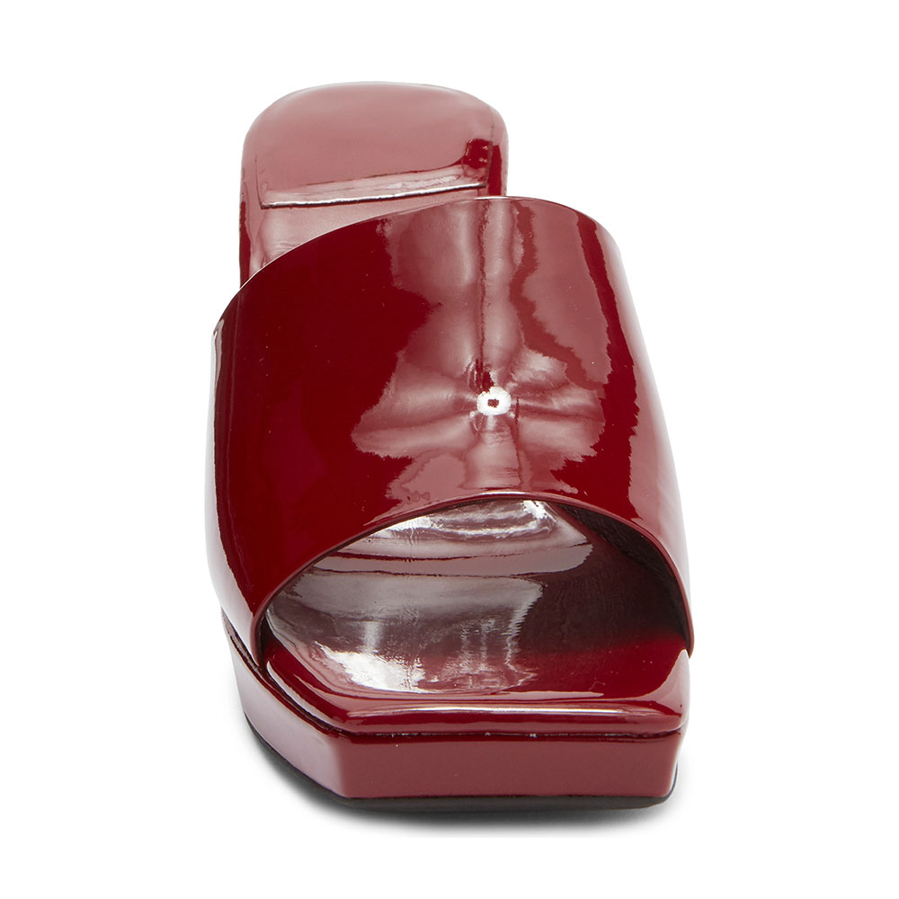 Ladies' Maroon Open Toe Wide Strap Slip On Platform Heel Sandals