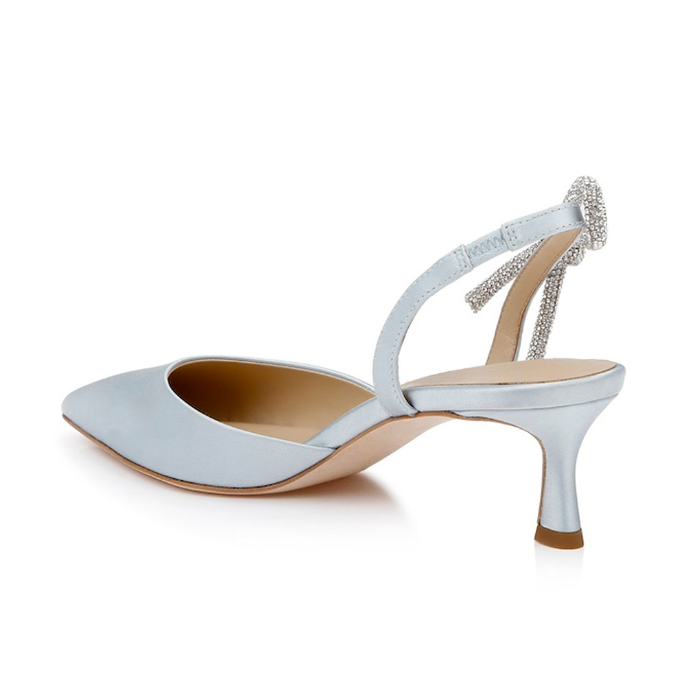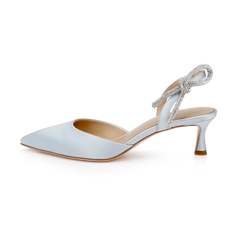 Light Blue Satin Slingback Crystal Draped Bow Pumps for Women