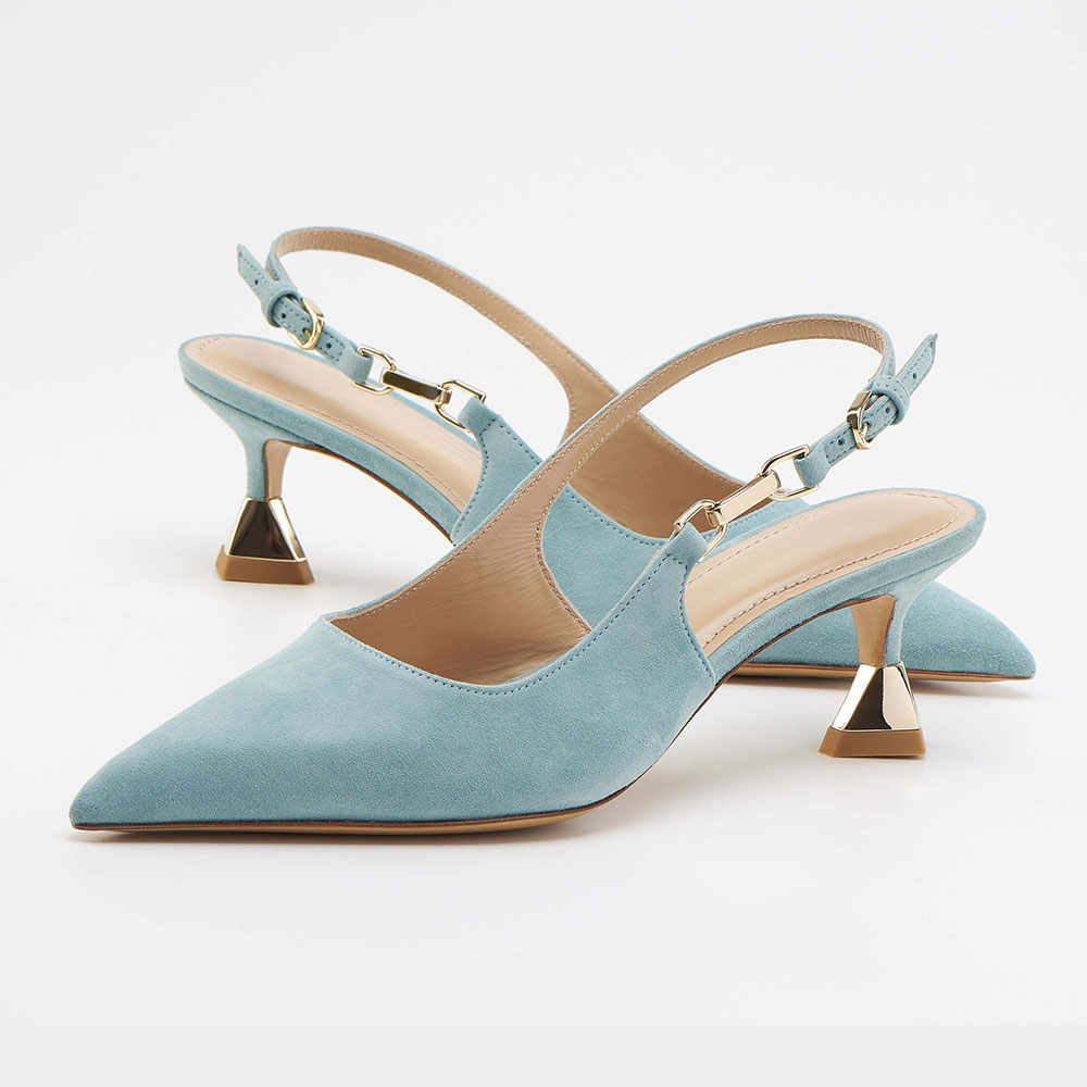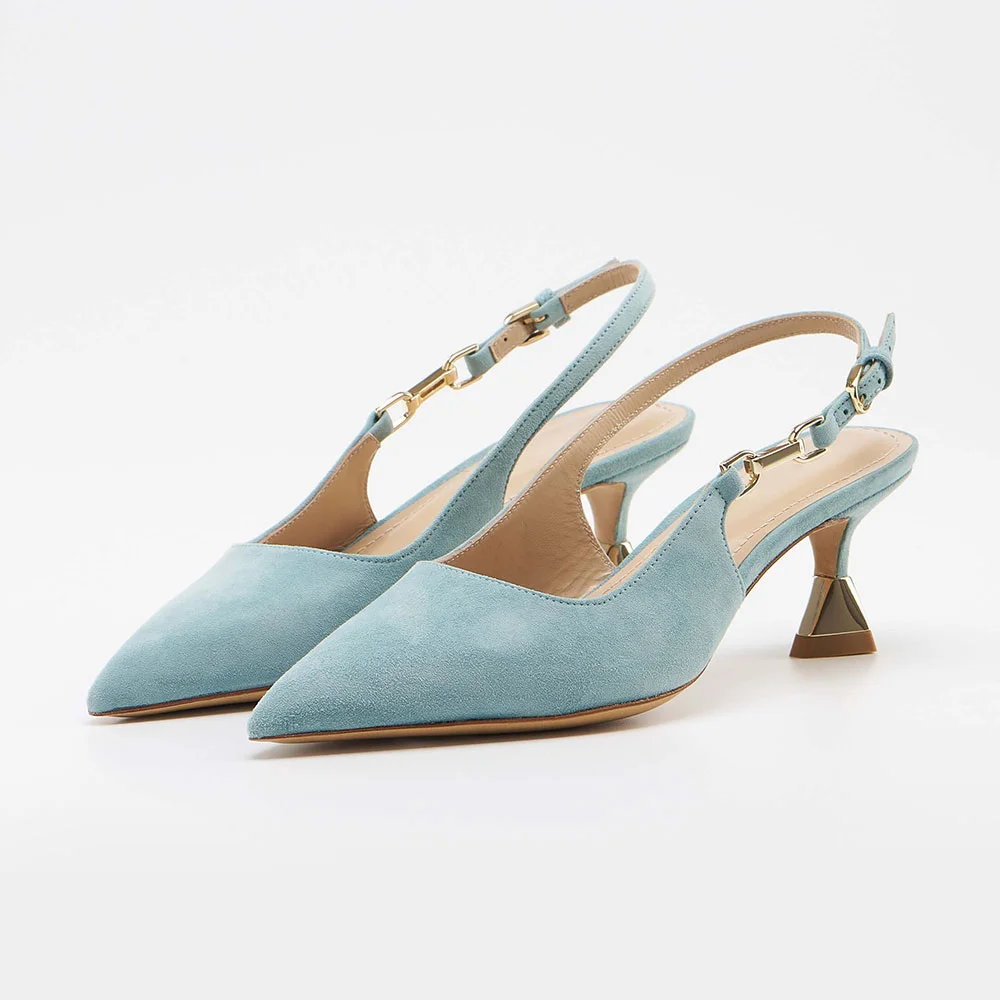 Light Blue Vegan Suede Pointed Toe Buckle Slingback Pumps Heels
