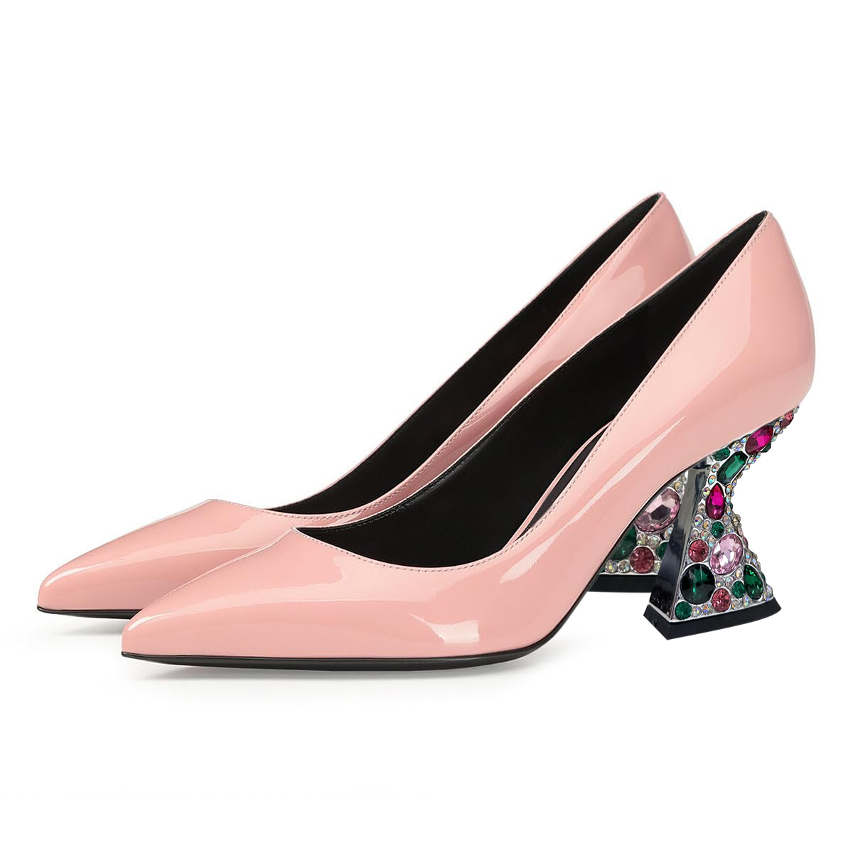 Light Pink Patent Leather Pointed Rhinestone Embellished Pumps