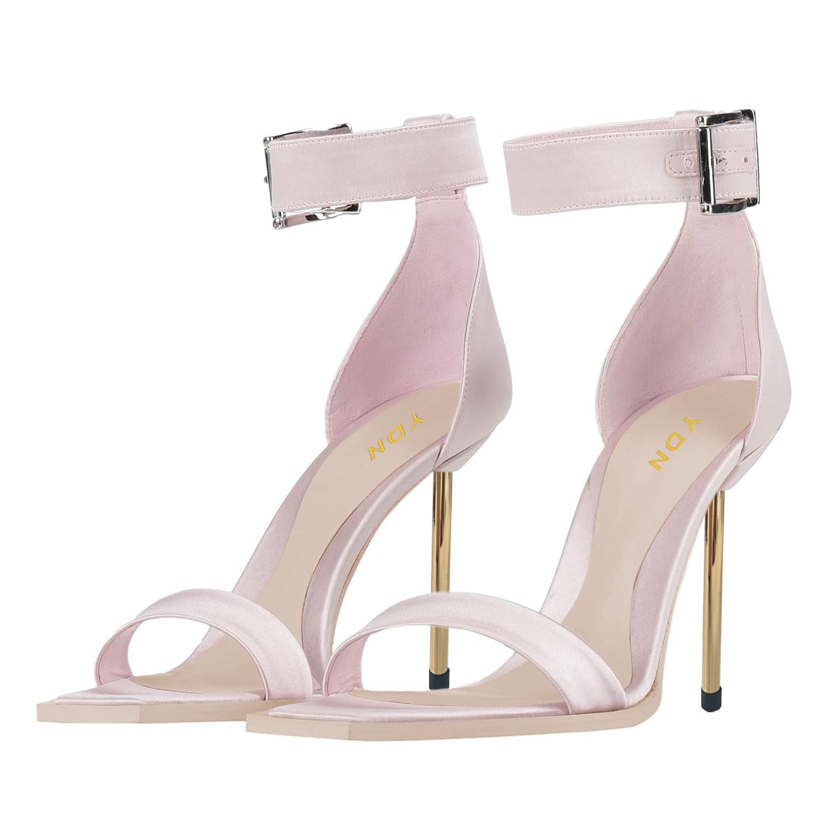 Light Pink Square Toe Stiletto Heel Ankle Strap Women's Sandals