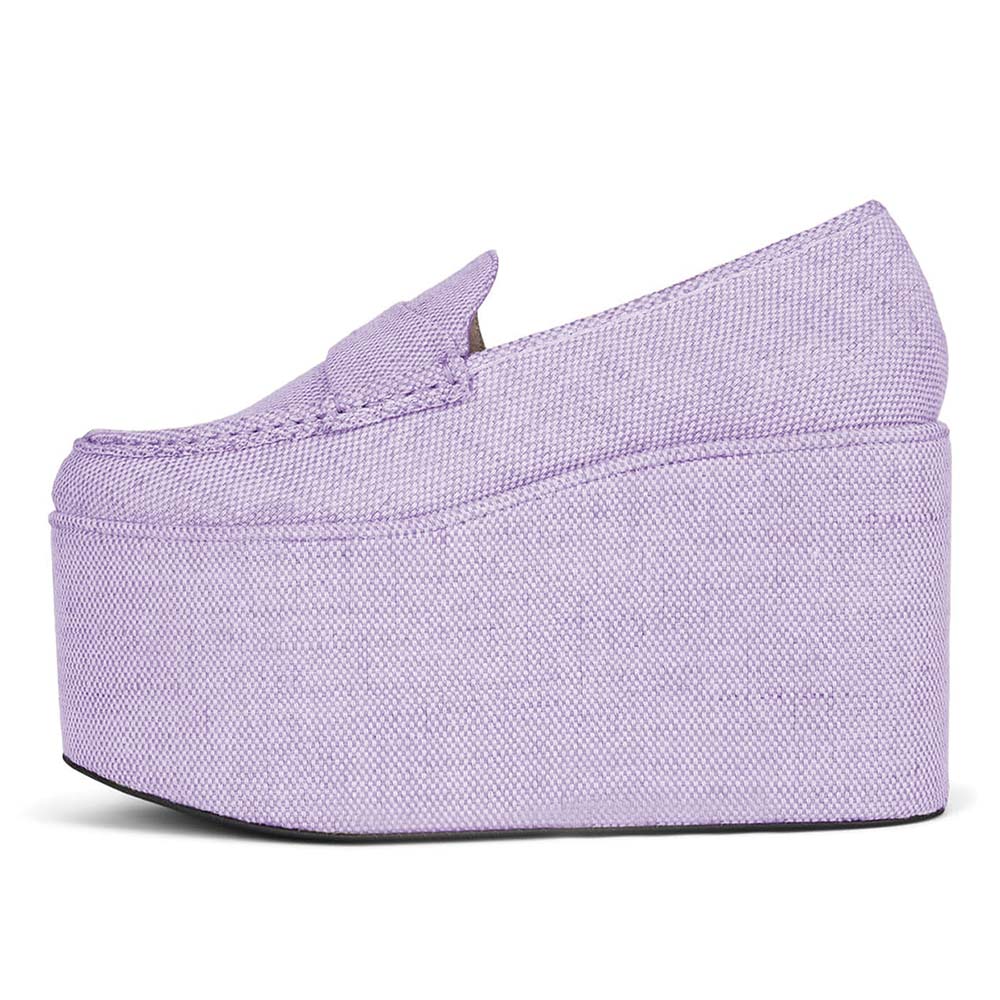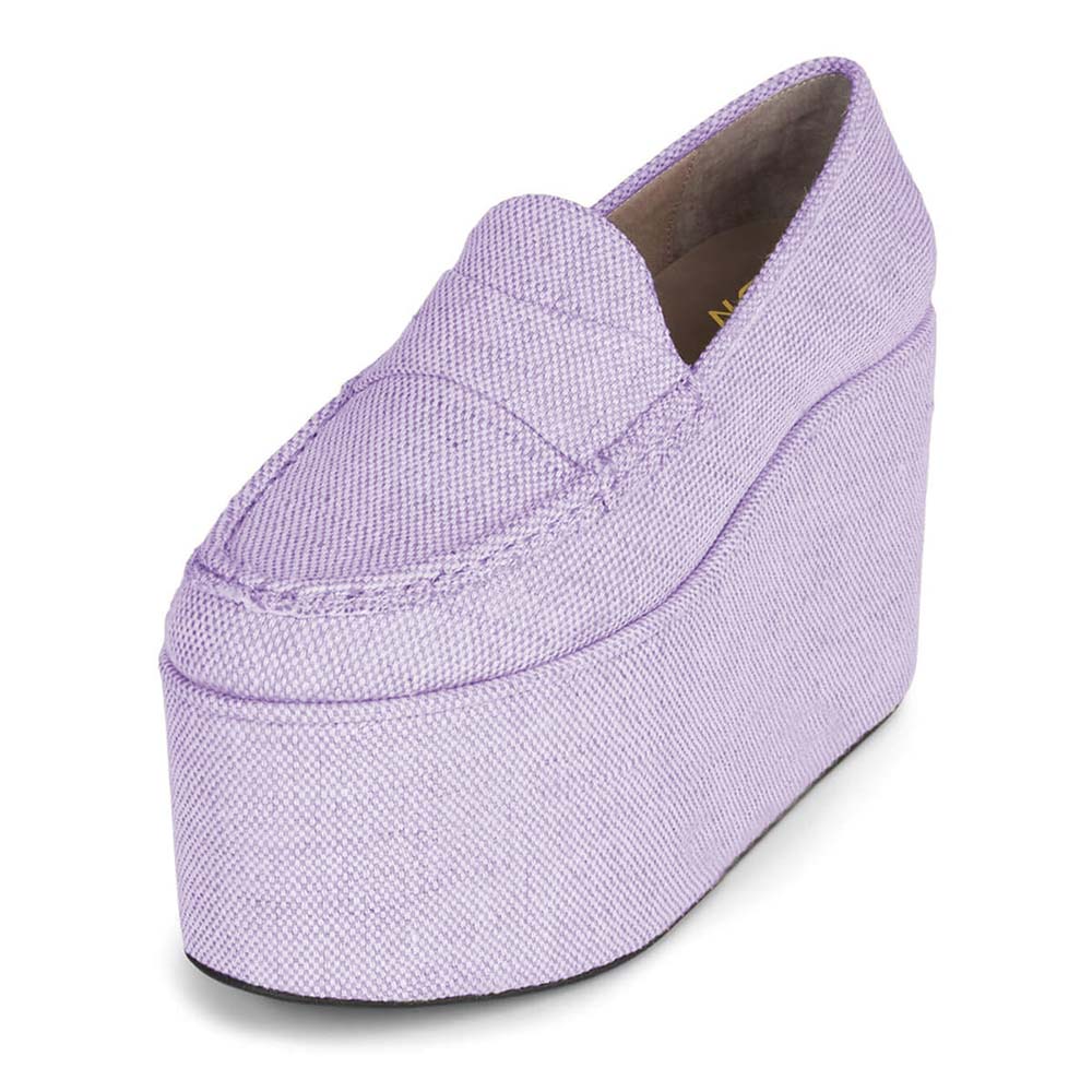 Light Purple Round Toe Wedge Heel Women's Loafers with Platform