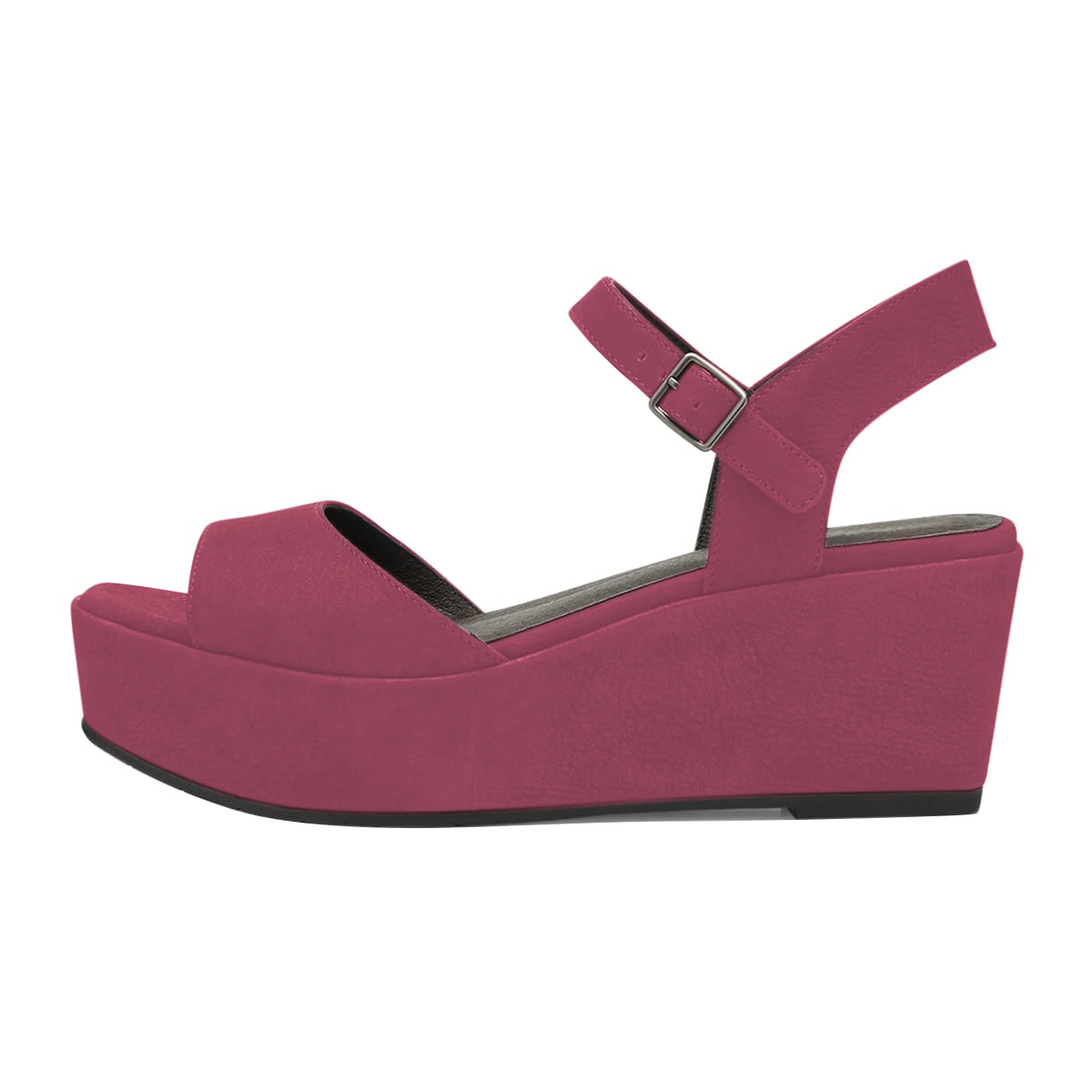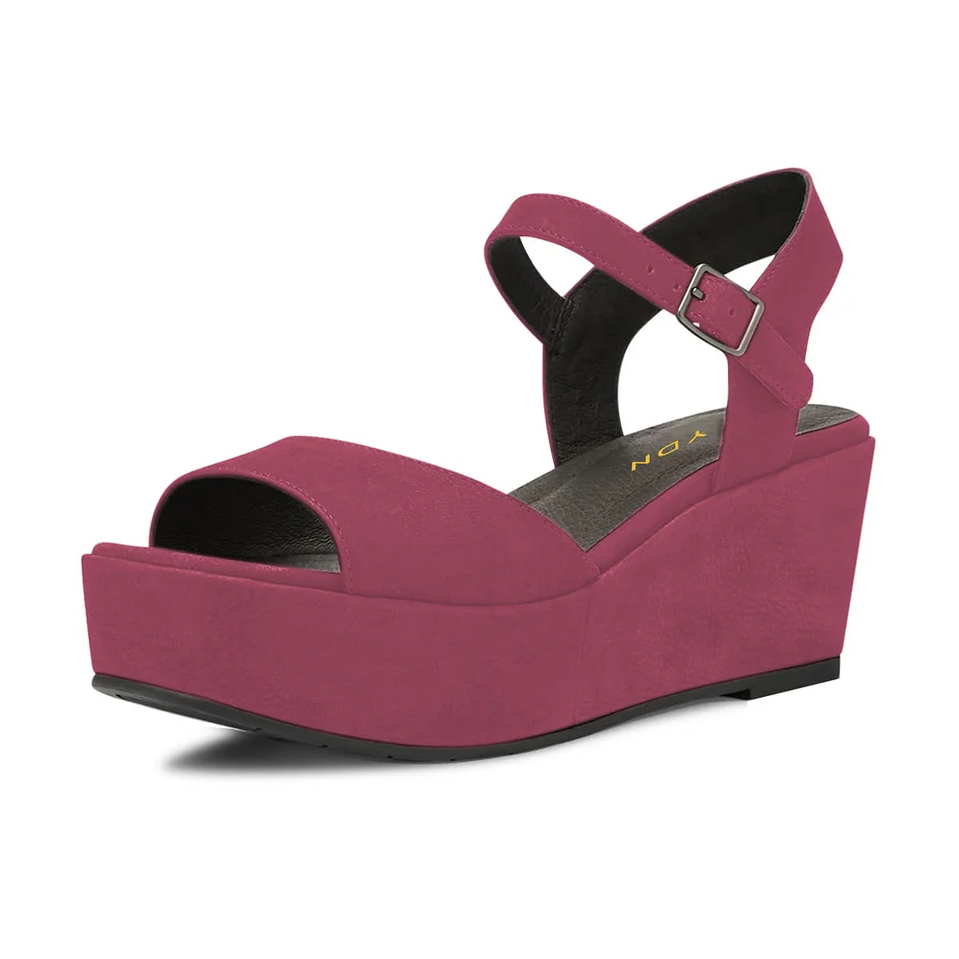 Dark Fuchsia Open-Toe Wedge Heel Platform Sandals with Ankle Strap