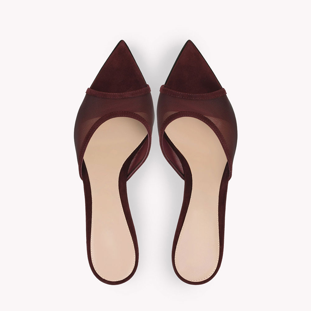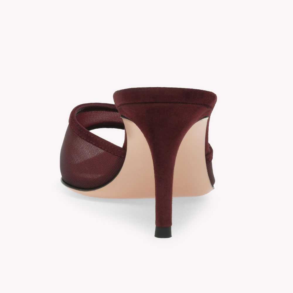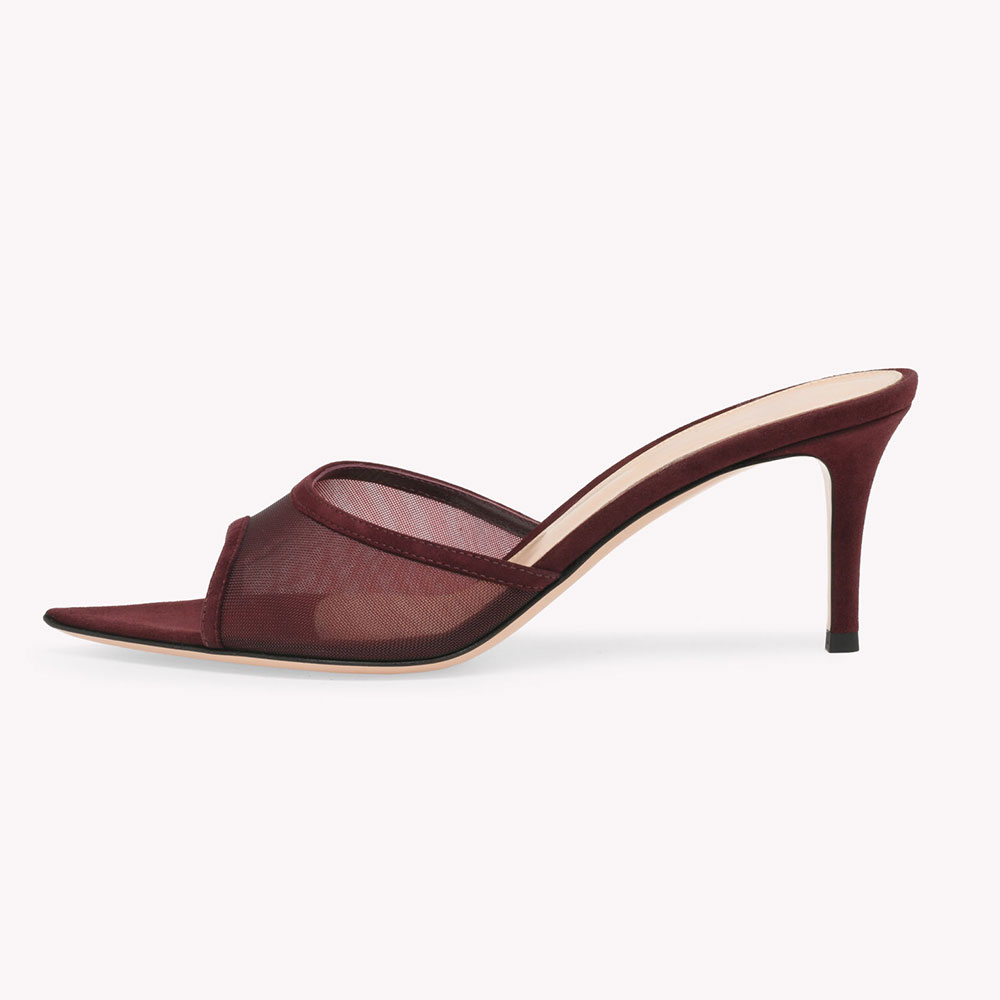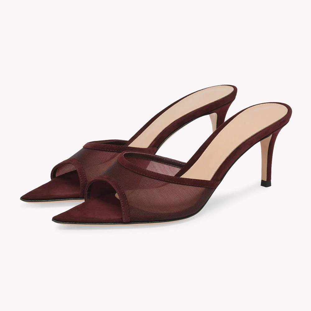 Maroon Breathable Mesh Stiletto Heel Pointed Toe Mules Shoes
