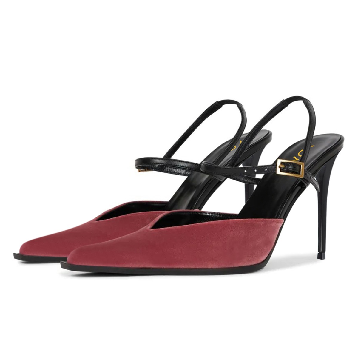 Maroon Buckled Pointed Toe Pumps Ankle Strap Stiletto High Heels