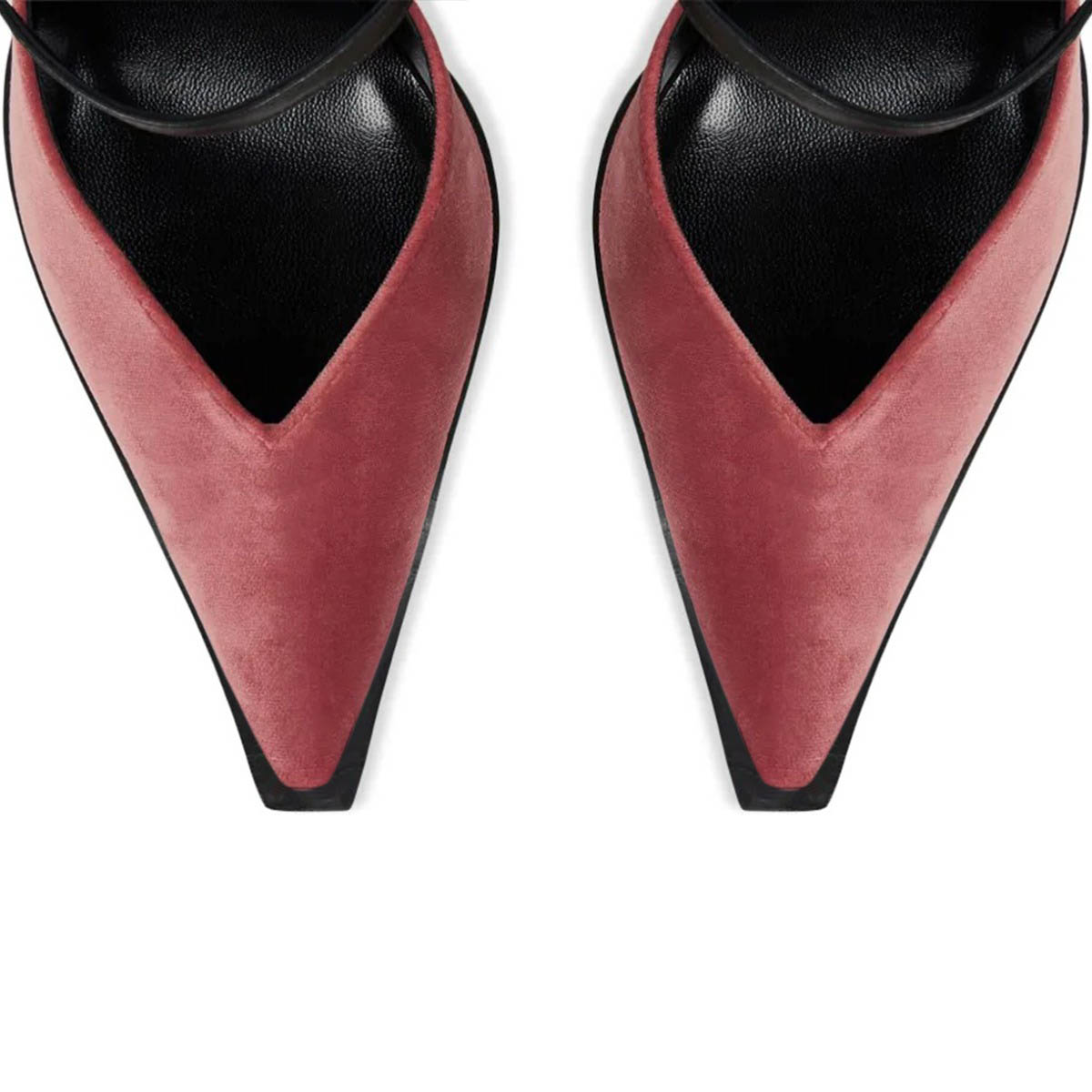 Special Designs: These pumps feature a closed toe, a high heel, an ankle strap, and an adjustable buckle design.