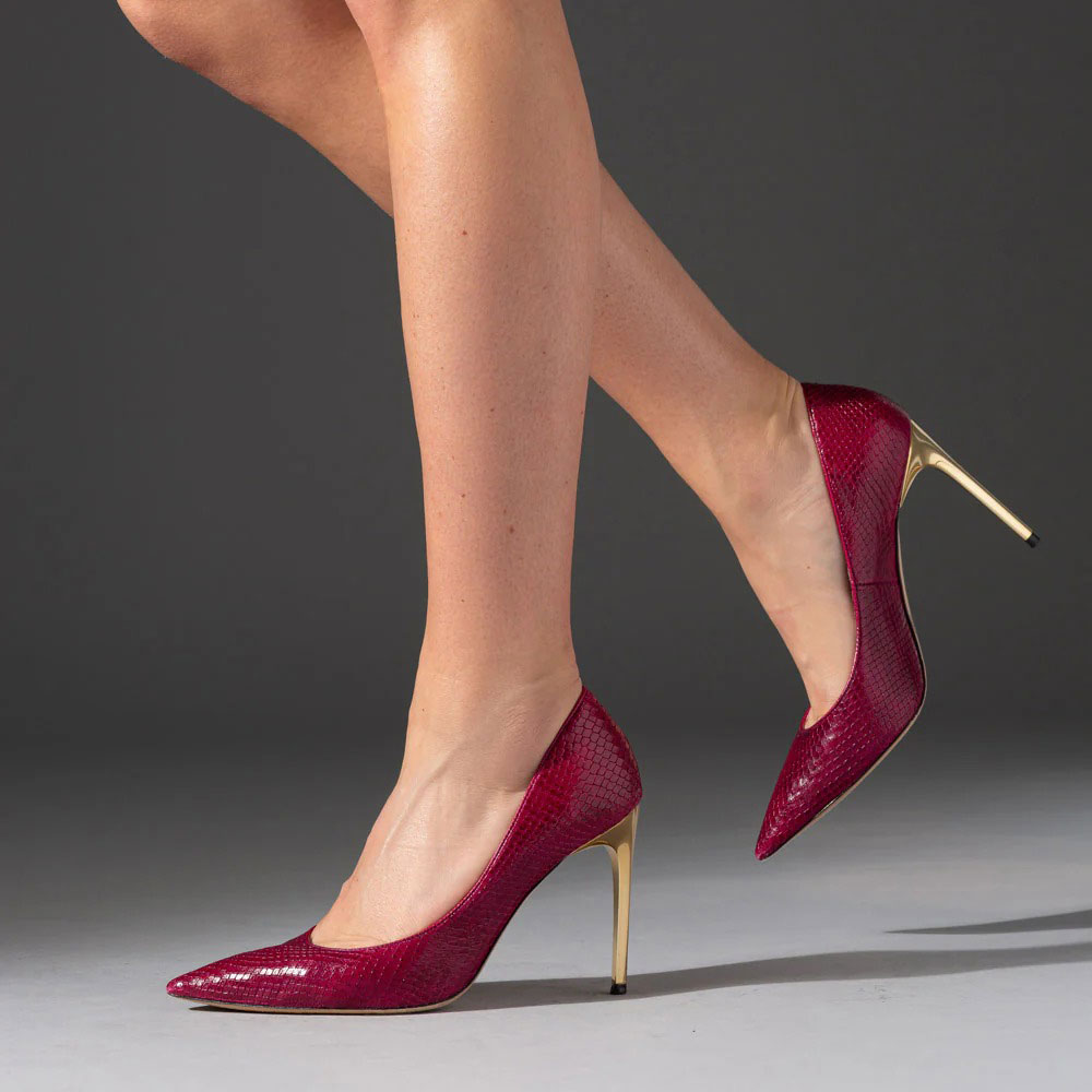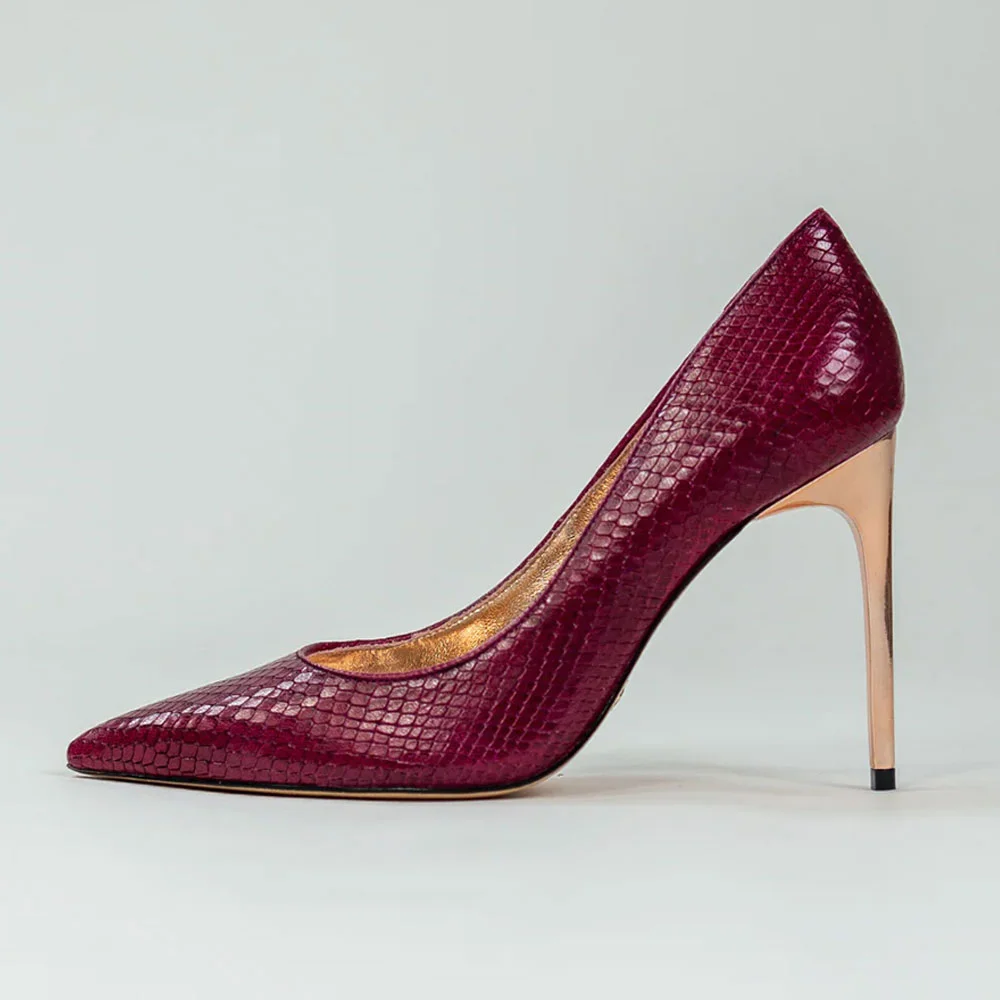 Maroon Embossed Pointed Toe Stiletto High Heels Pumps for Women