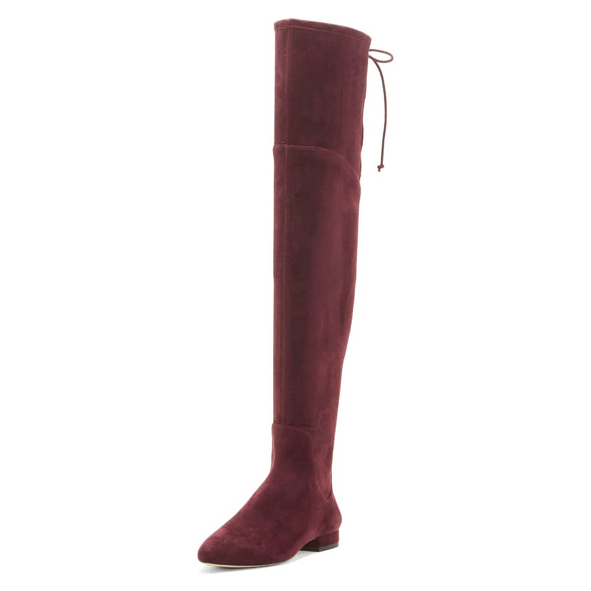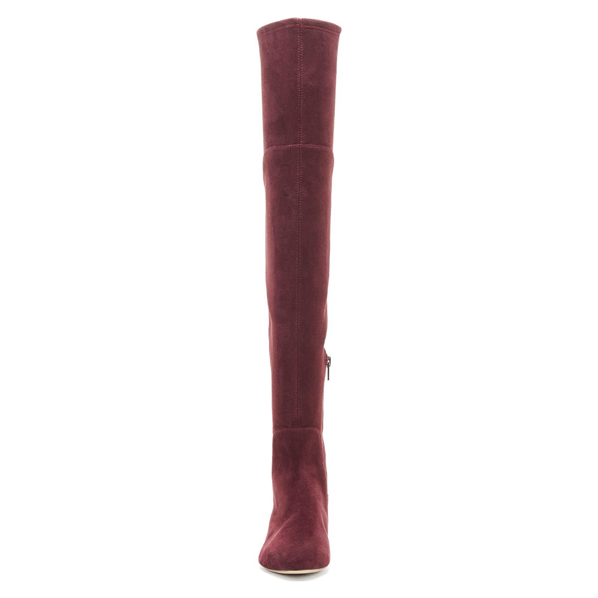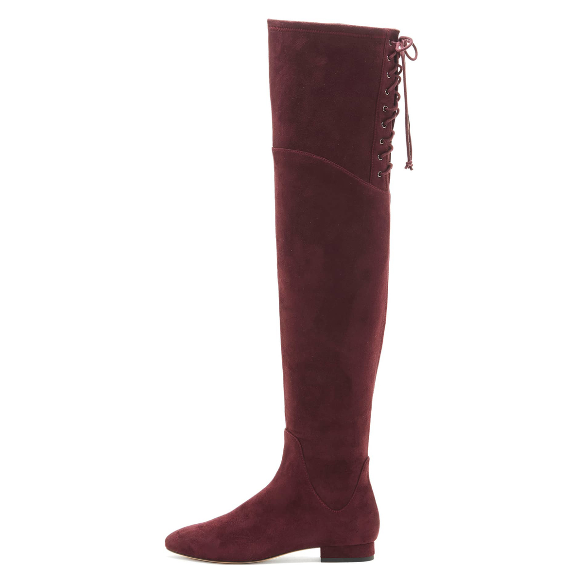 Maroon Faux Suede Side-Zip Lace-Up Block Heel Thigh-High Boots