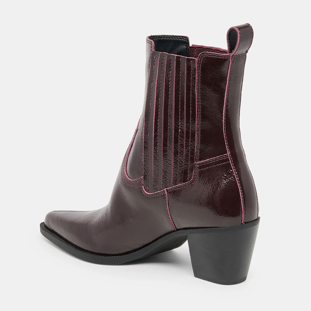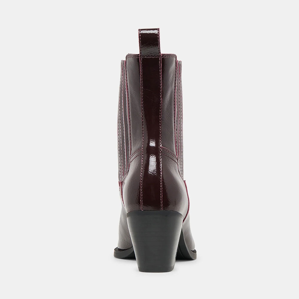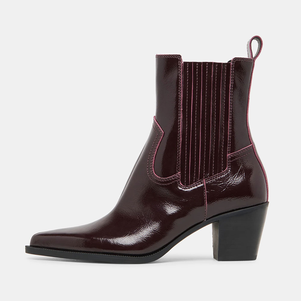 Maroon Mid Heeled Pointed Toe Slip On Chelsea Boots for Women