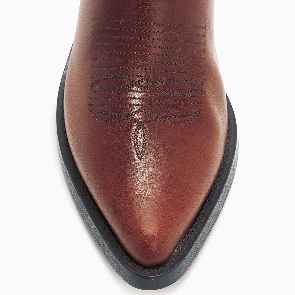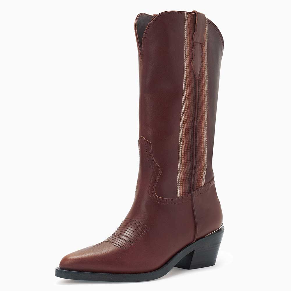 Maroon Pointed Toe Chunky Heel Cowgirl Boots with Ombre Stitching