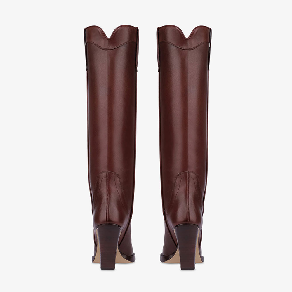 • Special Designs: The cowgirl boots feature a sleek vegan leather design, metal cap toes, a chunky heel, and classic Western-style stitching, and they pull on conveniently.
