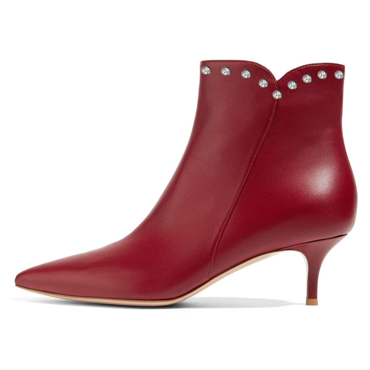 • Special Designs: Maroon classy ankle boots featuring a classic kitten heel, stud embellishment and side-zip closure.