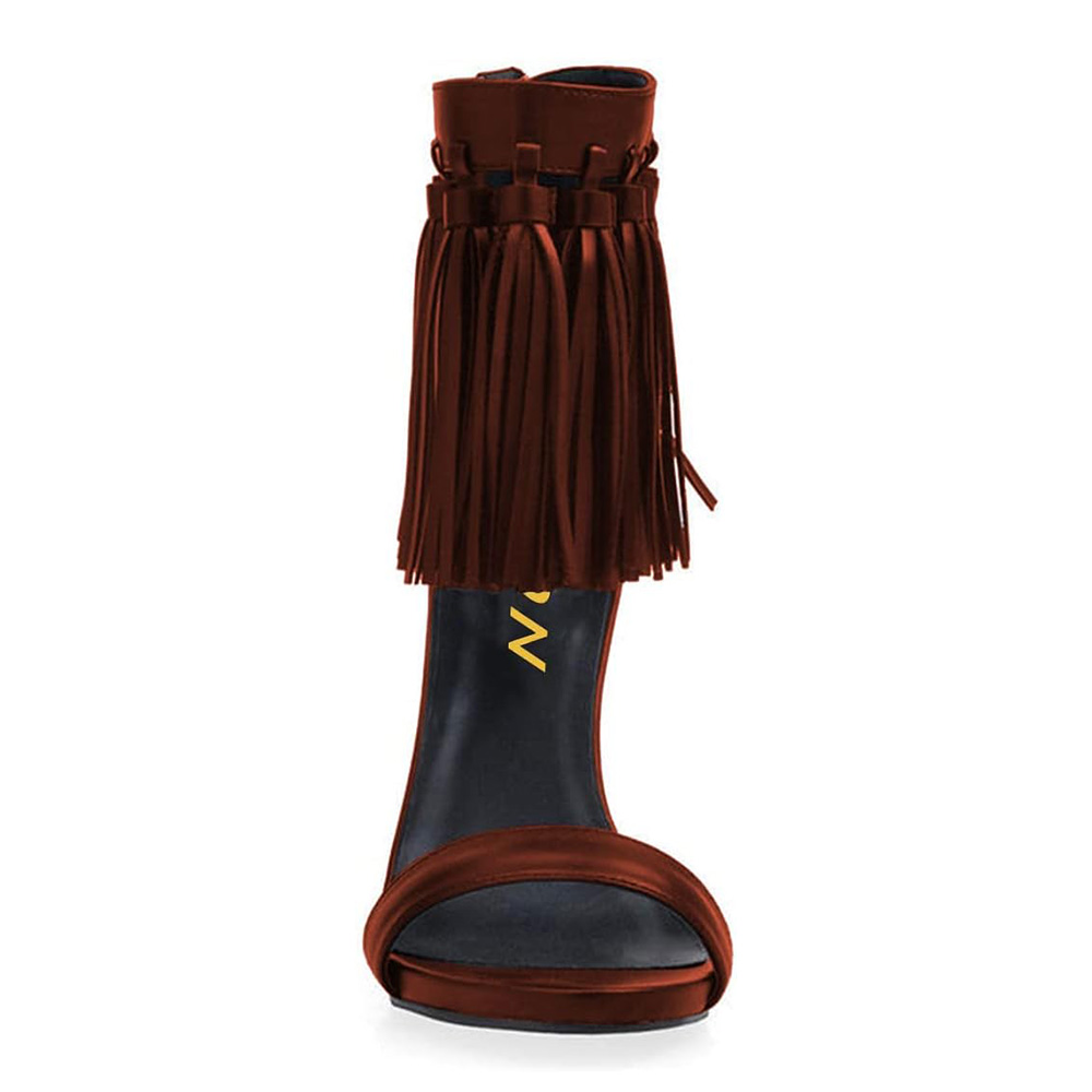 Special Designs: The open-toe sandals feature a tassel decor ankle strap and a back zipper.