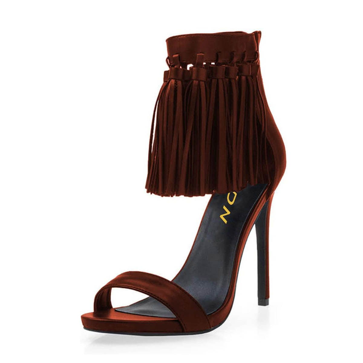 Maroon Vegan Leather Tassel Accent Stiletto Heel Sandals for Women