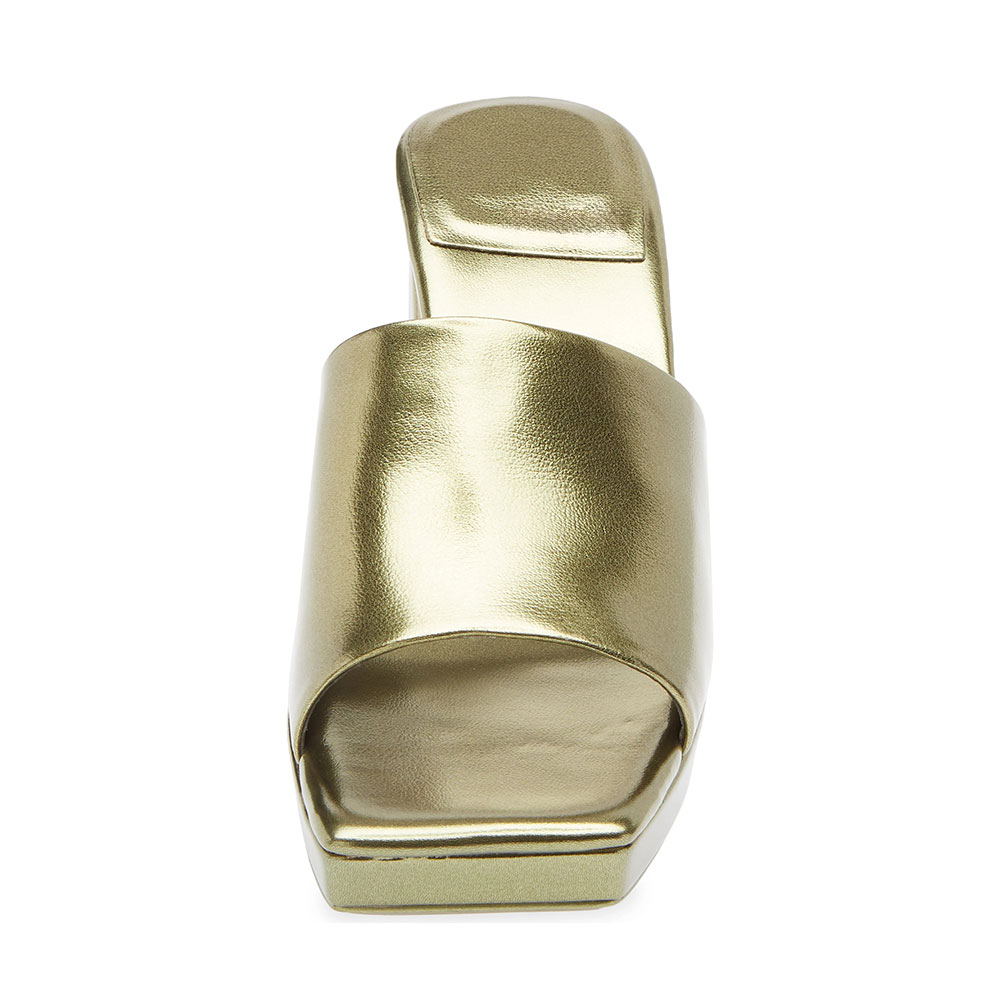 Metallic Open Square Toe Chunky Heel Platform Slide Sandals in Olive