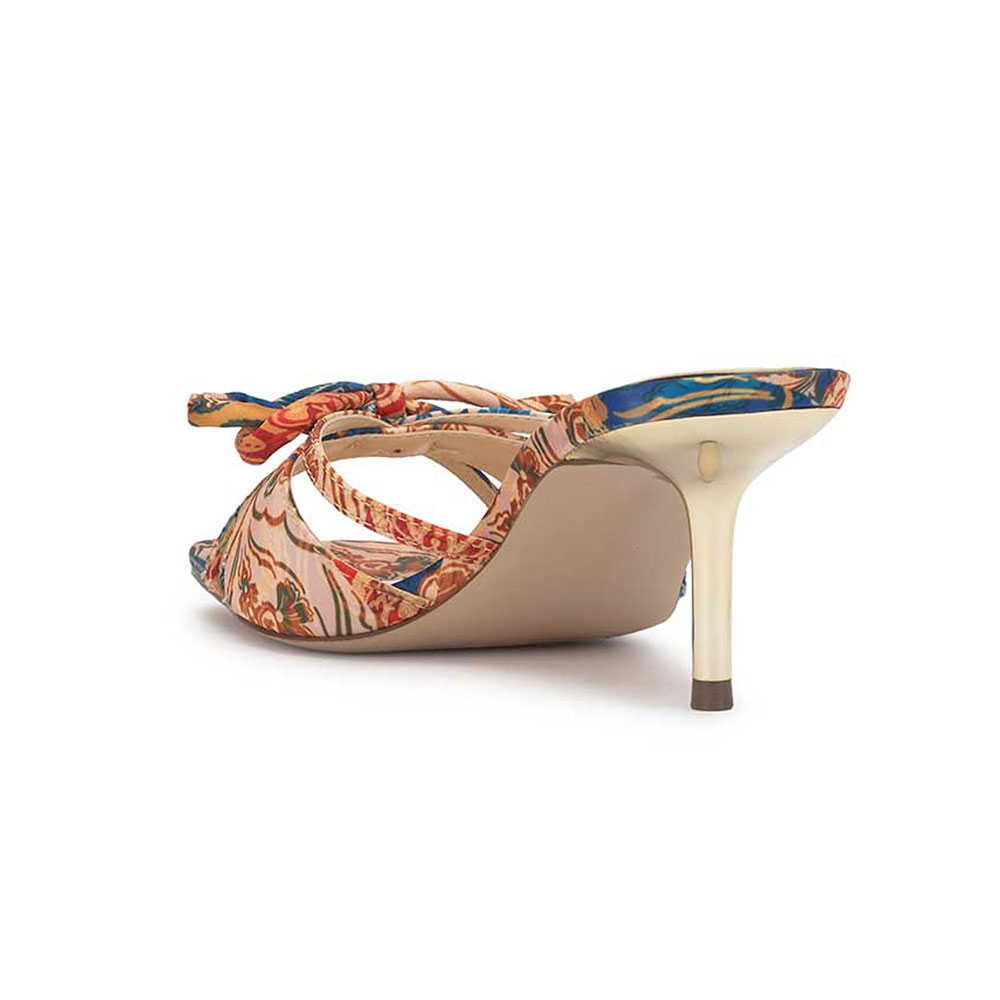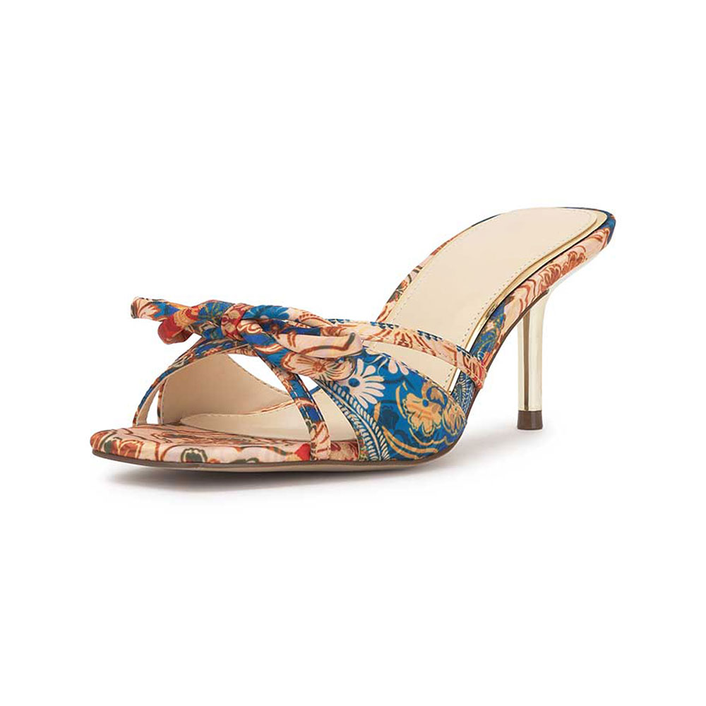 Multicolor Floral Print Open Toe Bow Slide Shoes with Stiletto Heels